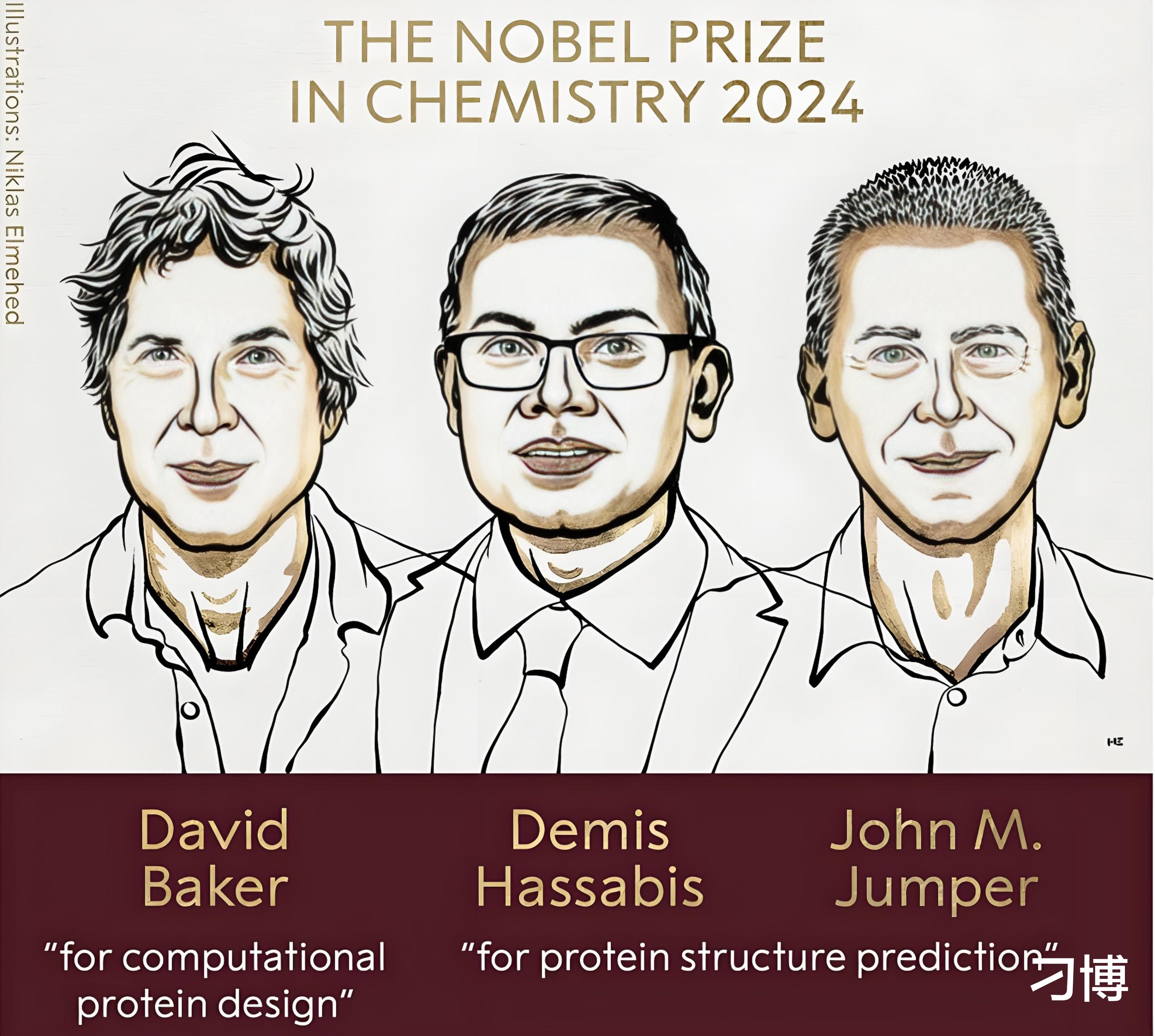 今年的诺贝尔化学奖一半授予David Baker,以表彰他在蛋白质设计方面的贡献;另一半授予Demise Hassabis和John M.Jumper,以表彰他们在AI预测蛋白质结构方面的贡献。