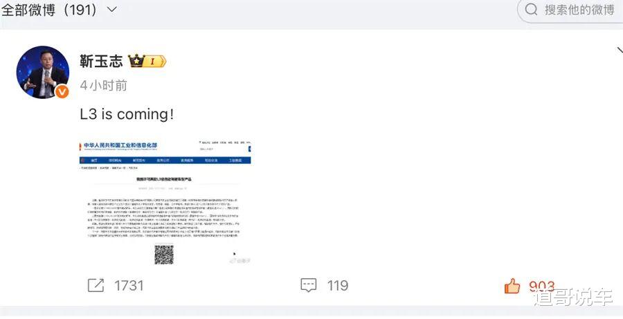 一南一北两家车企旗下车型,将率先进入L3时代,也将为行业叩响L3的大门。两款车型获得准入消息后,两家车企都官宣了喜报,同时行业高管以及两家车企的部分高管也对事件表达了看法。其中,华为智能汽车解决方案BU CEO靳玉志于微博表示:L3 is coming!中国长安汽车、长安汽车董事长朱华荣则在微博中写道:率先获批意味着沉甸甸的责任与使命!