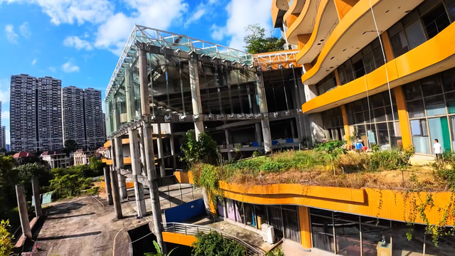 原本应是黄金地段上的一颗明珠,如今却成了被遗忘的角落。风吹过时,带着树叶钻进空洞的楼层,那声音细微却清晰,像在低声讲述一场未完的梦。