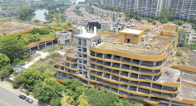 在东莞松山湖,一片被称为富人区的光大山河小区旁,静静立着一座未完成的建筑。