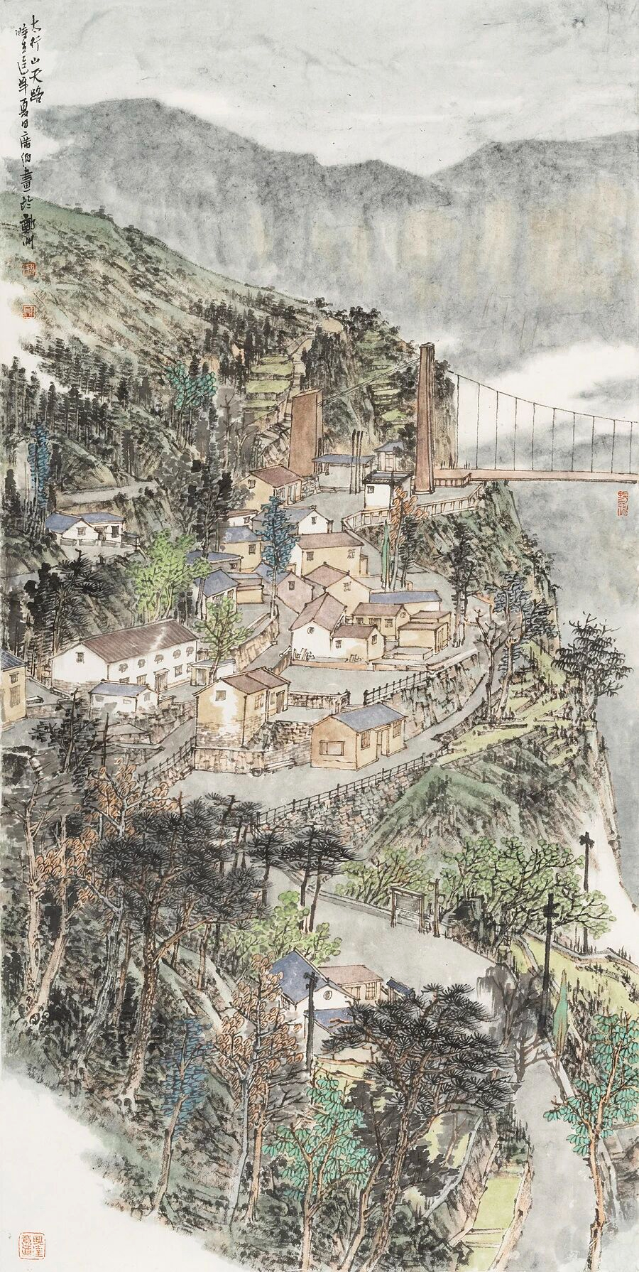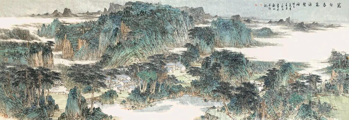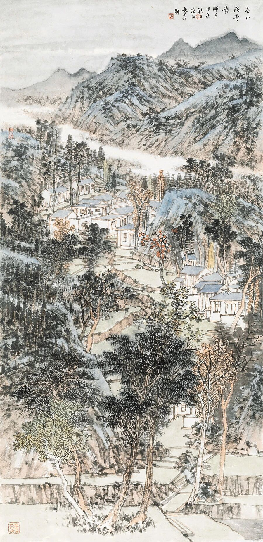 这技法哪里是 “承袭古法” 可束?是把青绿的雅揉进烟火的暖,把皴擦的刚融成晕染的柔;是让山有了岁月的痕,云有了流动的姿,村落有了生活的温。他的画是四季的容器:春藏在松梢的翠里,夏裹在溪涧的凉里,秋栖在叶尖的黄里,冬卧在崖壁的雪里,而人间的暖,就藏在每一扇半开的窗、每一道蜿蜒的径里。