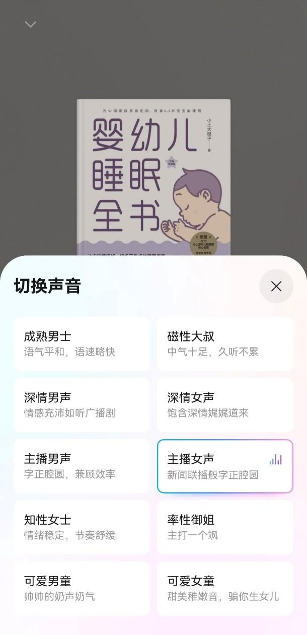 可能有人会质疑,带娃本来就很忙,哪还有时间看书啊!这里就不得不夸一夸华为阅读了,除了新推出的AI动态图书功能外,它还支持AI眼动翻页以及精品音色听书功能。当你一边双手抱着宝宝,一边看书讲故事时,手机放在支架上,不需要手动翻页,视线扫过屏幕底部,再抬眼时就会自动翻页,完全解放双手。做家务的时候,也可以使用精品音色听书,多种音色可选,声音自然生动,享受沉浸式的听书体验