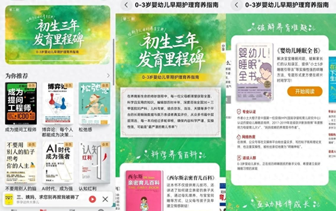 但如果你读了华为阅读的育儿书单,对于这种情况就能应对自如了。第二期书单中《婴幼儿睡眠全书》,就详细的讲解了婴儿睡眠的几个关键点。它分月龄科学指导,还给出了五大睡眠法则。按照它的科学方法育儿实操,孩子真的可以自主入睡了,不用再抱着一直哄,而且睡眠时间控制好了,也不用频繁起夜了,大人睡眠也能得到保障。
