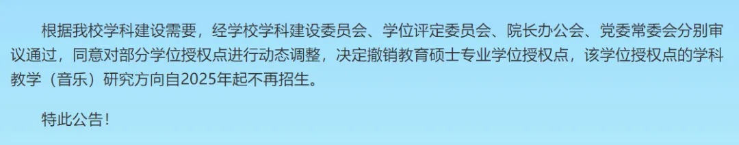 四川音乐学院:学科教学(音乐)研究方向自2025年起不再招生。