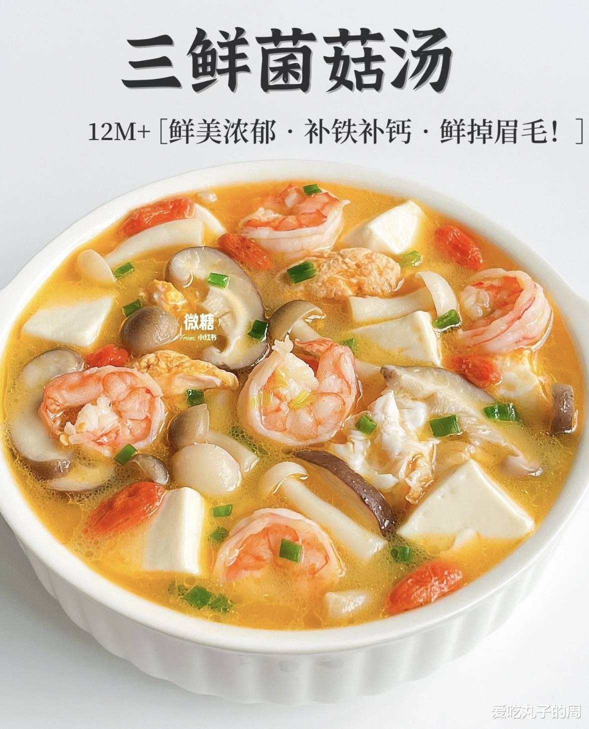 这道三鲜菌菇汤不仅味道鲜美,而且富含蛋白质和各种维生素,非常适合家庭日常饮用。希望您喜欢这个食谱!如果有任何问题或者需要进一步的帮助,请随时告诉我。