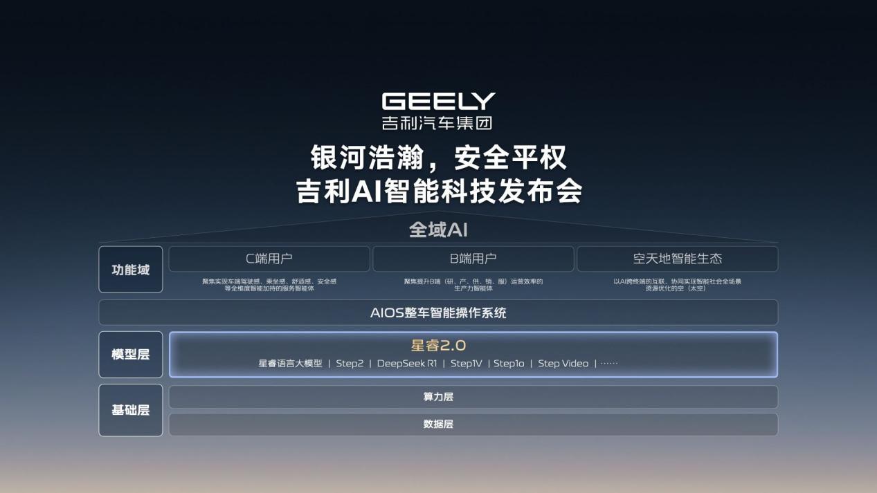 智能化不是豪华车的专属,而是撬动主流市场的核心杠杆,这是吉利交出的第一份作业。《台州宣言》承诺让高端智能配置下沉至大众车型,如今已转化为银河品牌的销量神话:11月132652辆的销量同比暴涨76%,前11月累计突破113.5万辆、增幅达167%,成为10万-20万级市场的“现象级”存在。吉利银河系列搭载的Flyme Auto智能座舱,实现跨端应用无缝流转;星睿AI大模型加持的“银河精灵”,能听懂方言、预判用户需求;千里浩瀚智驾系统更是直接标配,让L2级辅助驾驶成为家庭用户的“必选项”。这种“科技平权”策略,打破了“高智能=高售价”的行业惯性,证明把豪华级智能体验装进平民车型,才是打开主流市场的正确方式。
