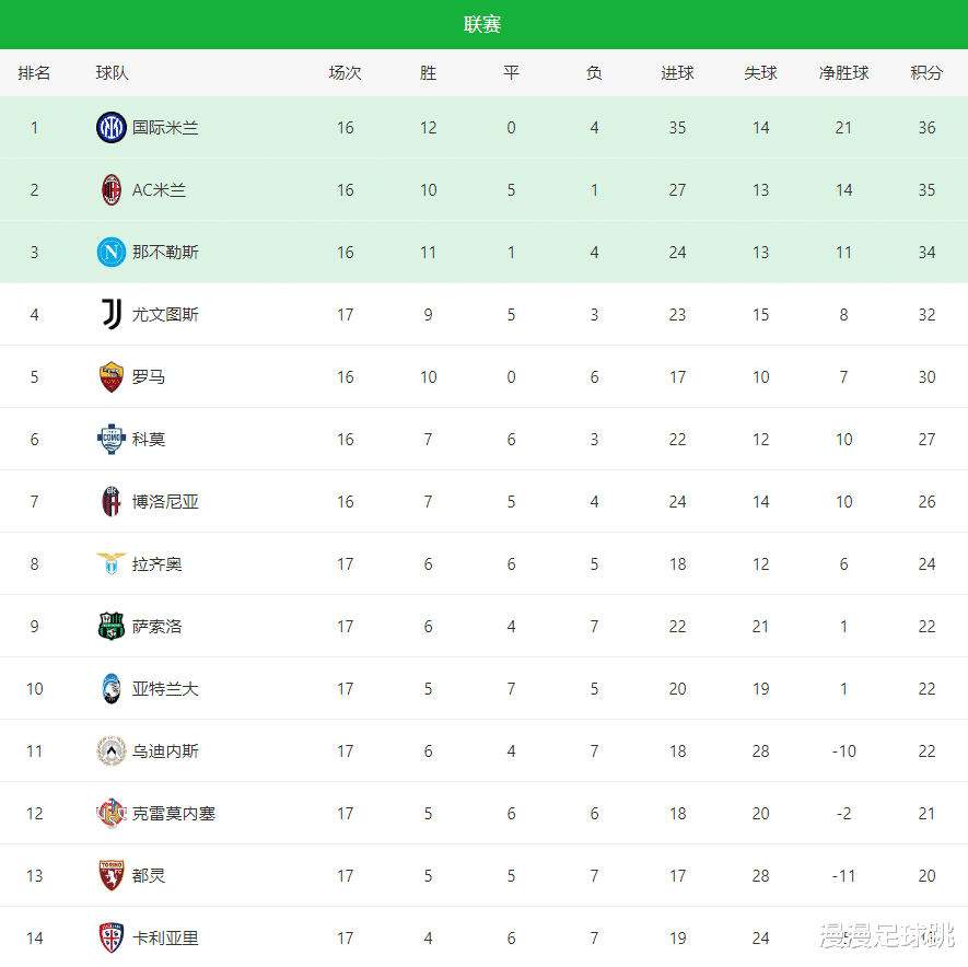 1-0!3-0!一夜综述:国际米兰领跑,卫冕冠军+米兰大胜,意甲最新积分榜