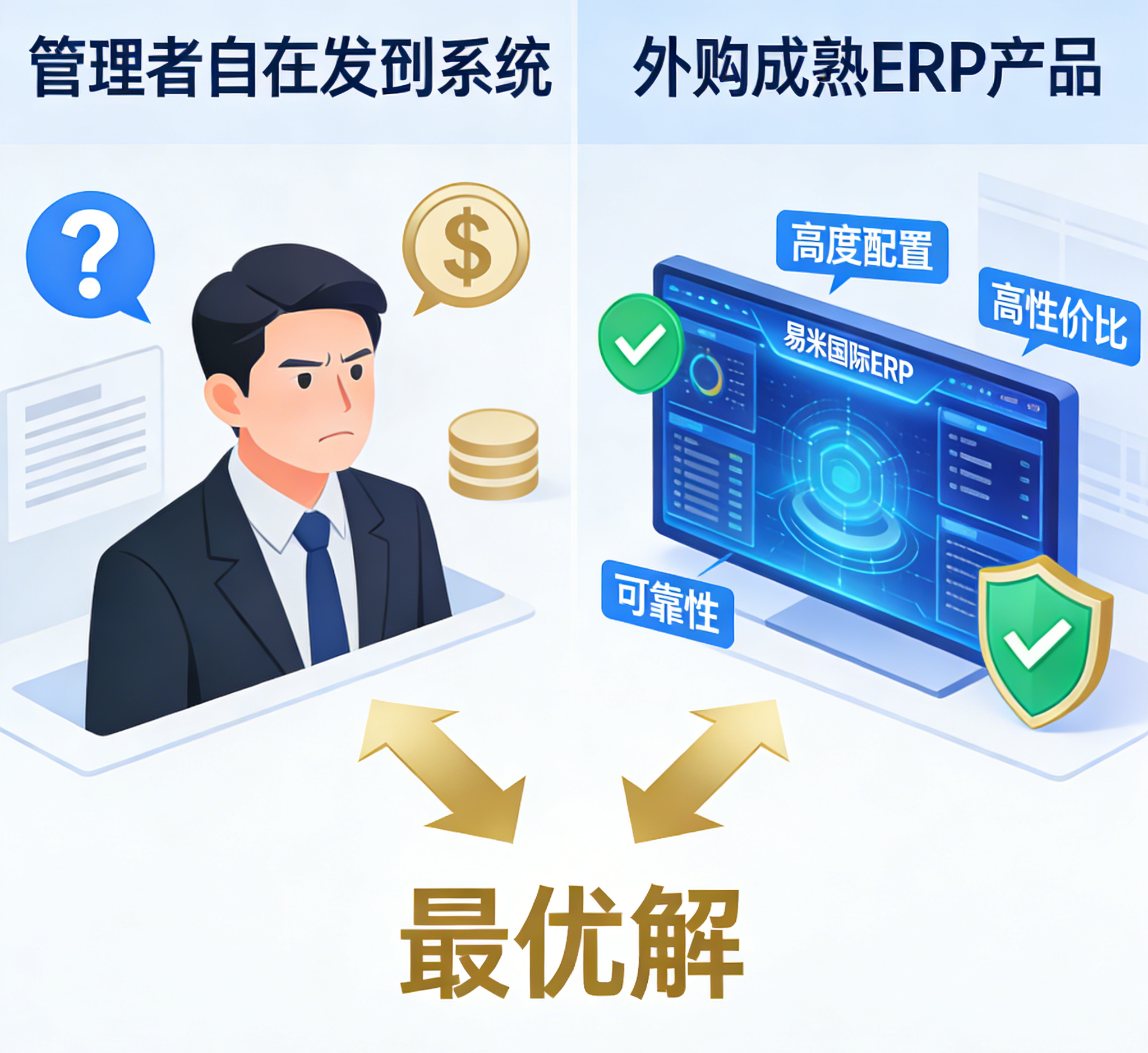 易米国际ERP的实践和众多客户案例表明,对于绝大多数中小企业,外购成熟的、可高度配置的ERP产品(如易米国际ERP),是更具性价比和可靠性的“最优解”。