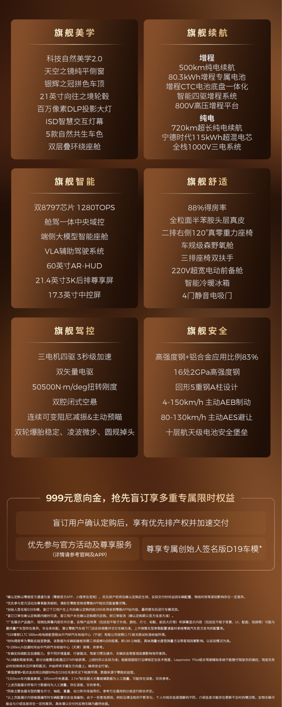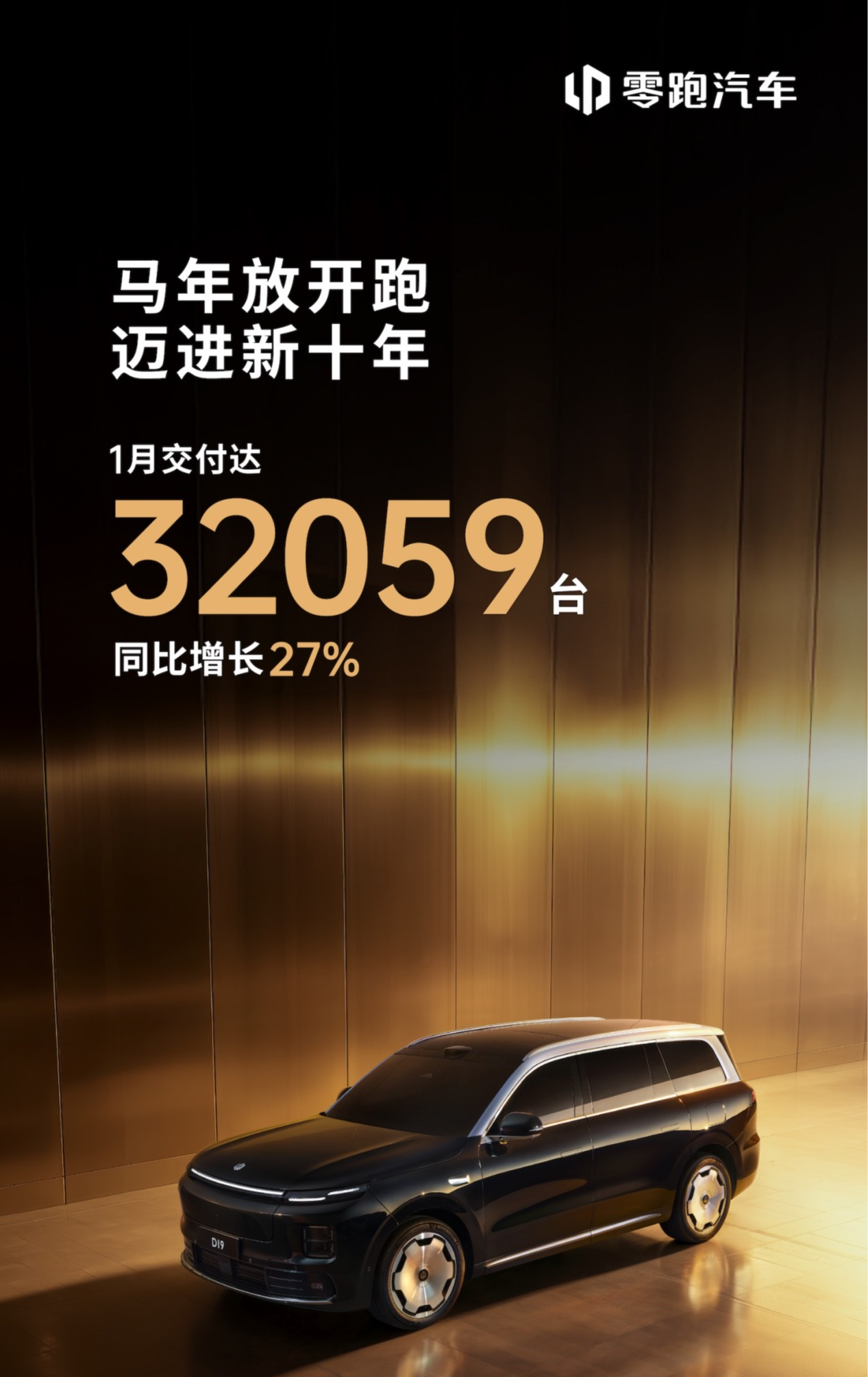 1月份的数据出炉了,刚在2025年夺得年度新势力销冠的零跑,延续了强势表现,1月份累计交付新车32059辆,并实现同比增长27%,为今年冲击百万年销目标营造了一个良好的开端。 当然,要想达成百万年销,零跑不能只靠在售车型,即将登陆市场的几款车型也很关键,同时高端市场也会是零跑未来销量的一个增长方向。 已经开启盲订的D19,就是零跑首款冲击高端的车型,该车汇聚十年技术大成,可以说是“顶配中的顶配”,除了拥有全尺寸体量、百万像素DLP投影大灯、ISD智慧交互灯幕,以及投入2000万开发的零阶差纯平侧窗、与百万级豪车同源的半苯胺头层真皮等高级工艺,还首创应用了80.3度超大电池增程车、全域千伏高压架构纯电车,并首发搭载了双8797芯片等等硬核产品力。 如此旗舰的产品力,D19却是面向30万级市场,同样展现了零跑的价格诚意,所以目前新车盲订也是非常火热。据悉D19将会在4月迎来上市,作为提升零跑品牌形象的车型,结合盲订热度看,它的到来势必会提升零跑销量,加速达成百万年销KPI。