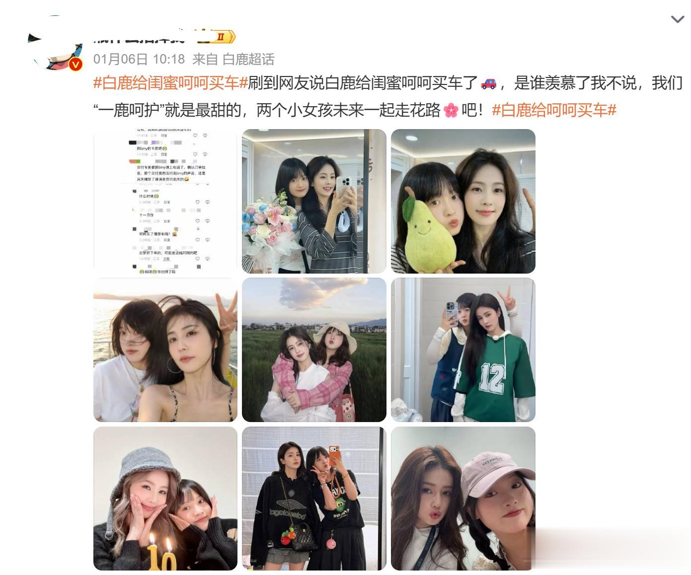 她给呵呵开了亲密付;时不时地就给呵呵发红包;带呵呵见各种偶像,参加各种星光大赏,最近,据爆料,白鹿还给呵呵买了车。而这一路上,呵呵也时刻陪在白鹿身边,在白鹿最黑暗的时刻,呵呵一直陪在她身边,陪她天南海北的看病、散心;用镜头记录下白鹿最美好的时刻。