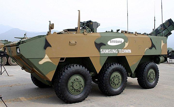 由韩国三星公司研制6×6型多功能装甲车,可载两名乘员和10名士兵,战斗全重为18吨,有效载荷为4.5吨,发动机最大功率为400马力,最大时速为100千米/小时、水上10千米/小时。