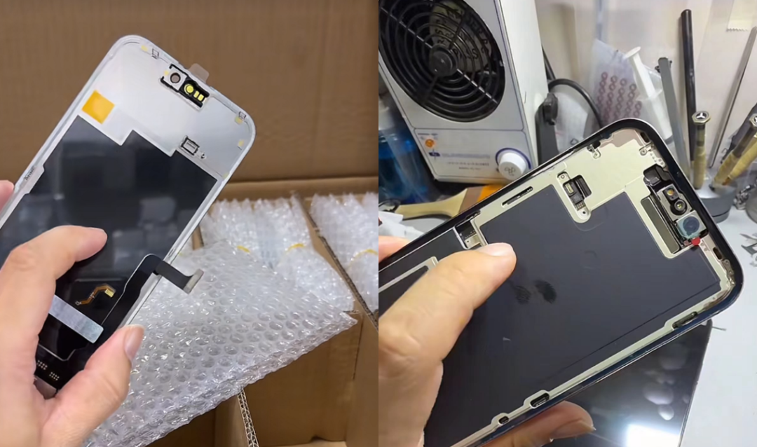 而且别觉得国产屏还是以前的样子。五六年前我卖过iPhoneX的国产屏机,那时候的屏是真拉胯——又厚又重,下巴宽得能跑马,显示发虚还特别耗电,便宜几百也没人愿意长期用。但现在的国产柔性OLED,是真的刷新认知。虽然和原装屏还有差距,达不到一模一样的效果,但比起以前的FOG屏、普通国屏,体验直接翻倍,也难怪同行早在去年就开始布局,明说换屏机比原装机便宜几千,一天还能卖爆。