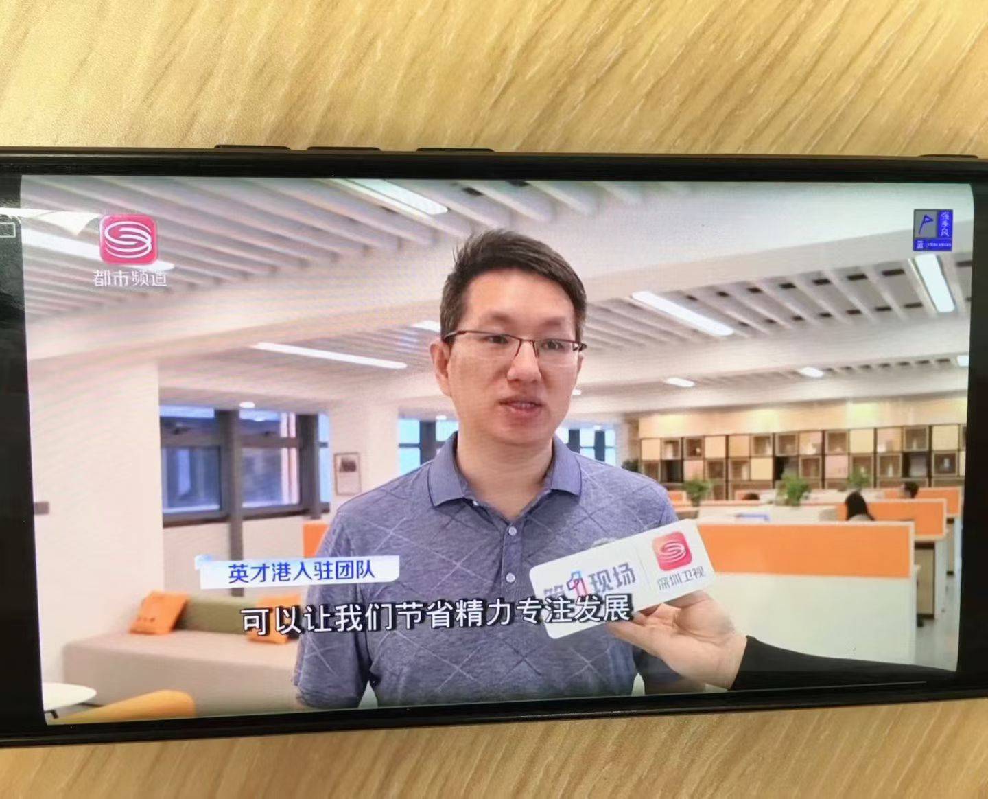 对我个人而言,今年有两段意外的经历。8月份,因为入驻英才港,本人有幸作为入驻团队成员,接受了深圳卫视的采访(下图1)人生第一次上了电视。11月份,在深创赛国际赛现场,以入驻团队代表的身份参与活动,并作为嘉宾再次接受了采访(下图2)。这些机会,让我和我们的项目被更多人看见,也是一种宝贵的成长。