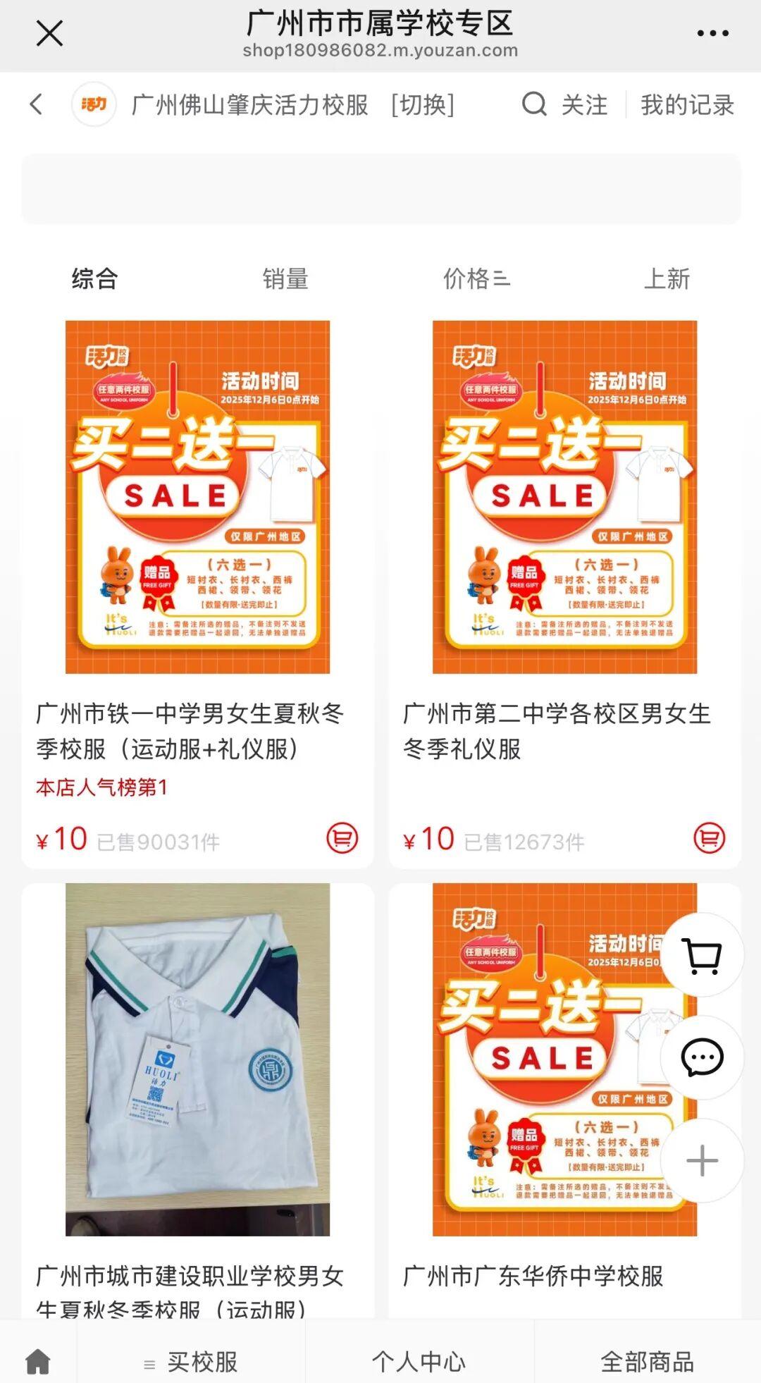 线上商城方面,记者从活力校服专卖店(龙津西路店)的线上商城了解到,目前活力校服可以在线上门店购买,正在进行优惠活动。记者登录了深圳市中南活力实业股份有限公司的微信服务号,根据指引进入线上商城看到,目前广州地区的校服正在进行“买二送一”优惠活动,活动时间从12月6日开始,赠品包括短袖衬衣、长袖衬衣、西裤、西裙、领带等。广州市铁一中学、广州市第二中学、广东华侨中学等多所学校校服都在此线上商城上有售。