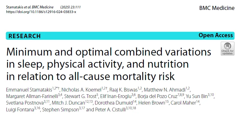 通过佩戴加速度计记录了睡眠以及中高强度运动,并记录了受试者的饮食数据,分析睡眠、运动以及饮食对于全因死亡风险的综合影响,进行了中位8年的随访。