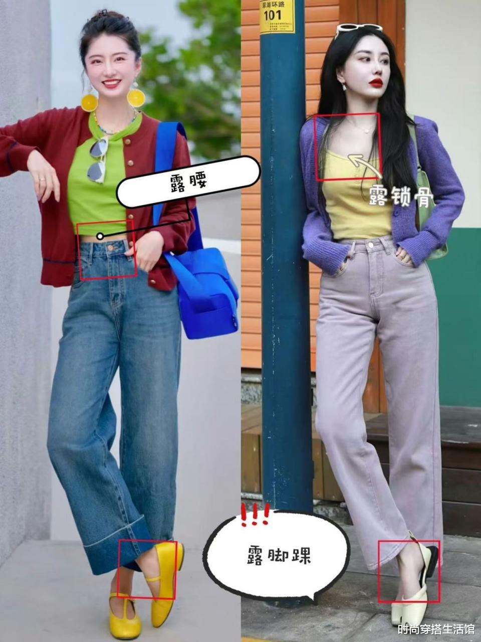 春季穿搭中我们还需要适当的露肤,能够很好的提升轻盈感,尤其是下装方面的话我们可以选择九分长度的裤子,露出纤细脚踝线条会更加的显高显腿长。或者是在上衣方面我们可以选择V领设计或者大方领的领型,从而在脖颈处打造出大面积的露肤感,整体搭配会更显轻盈和舒适。