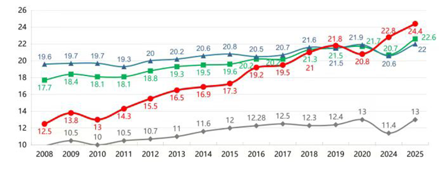 ·另一些国家则出现结构性断裂,而非简单下滑。