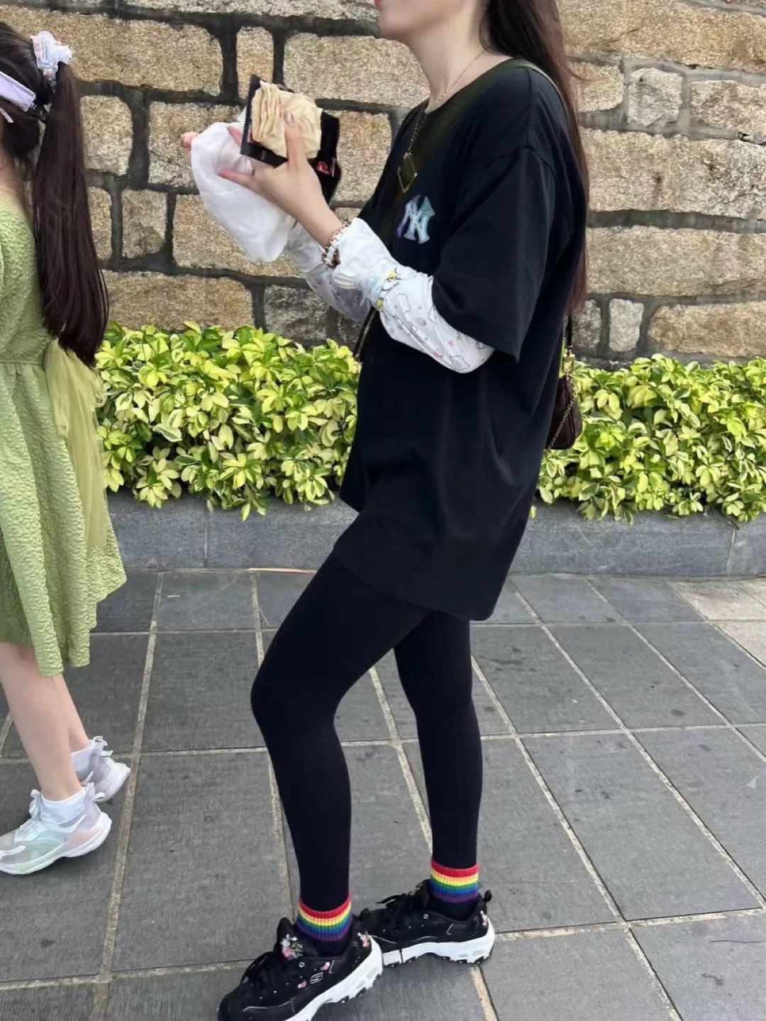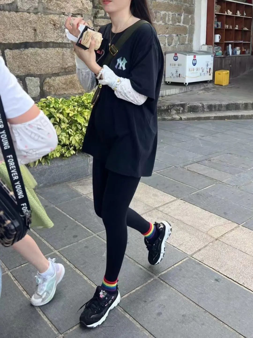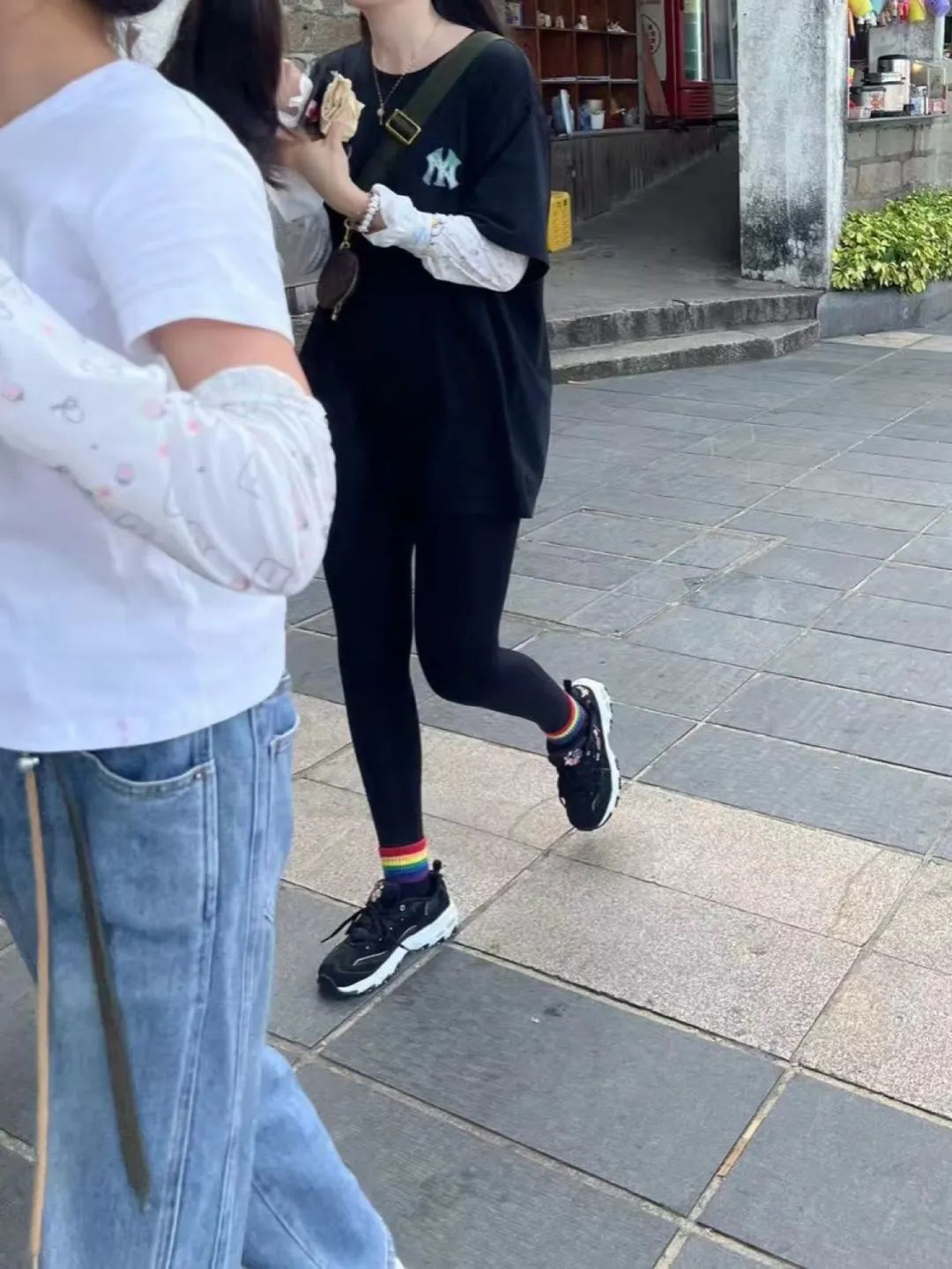 “黑色T恤搭配紧身裤的潮流密码”