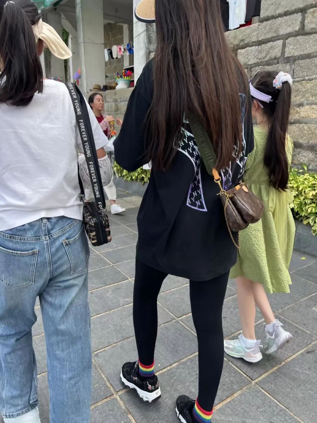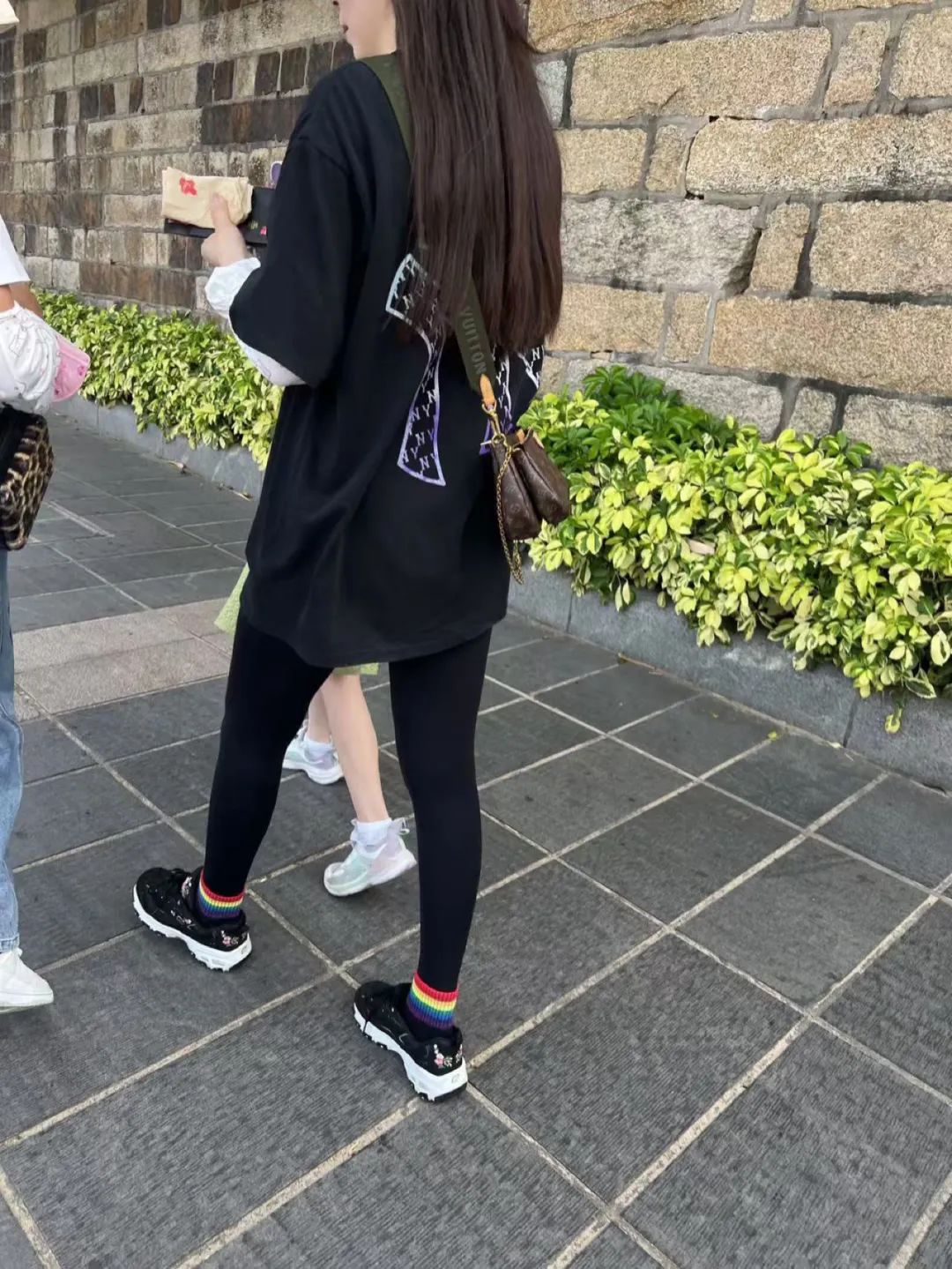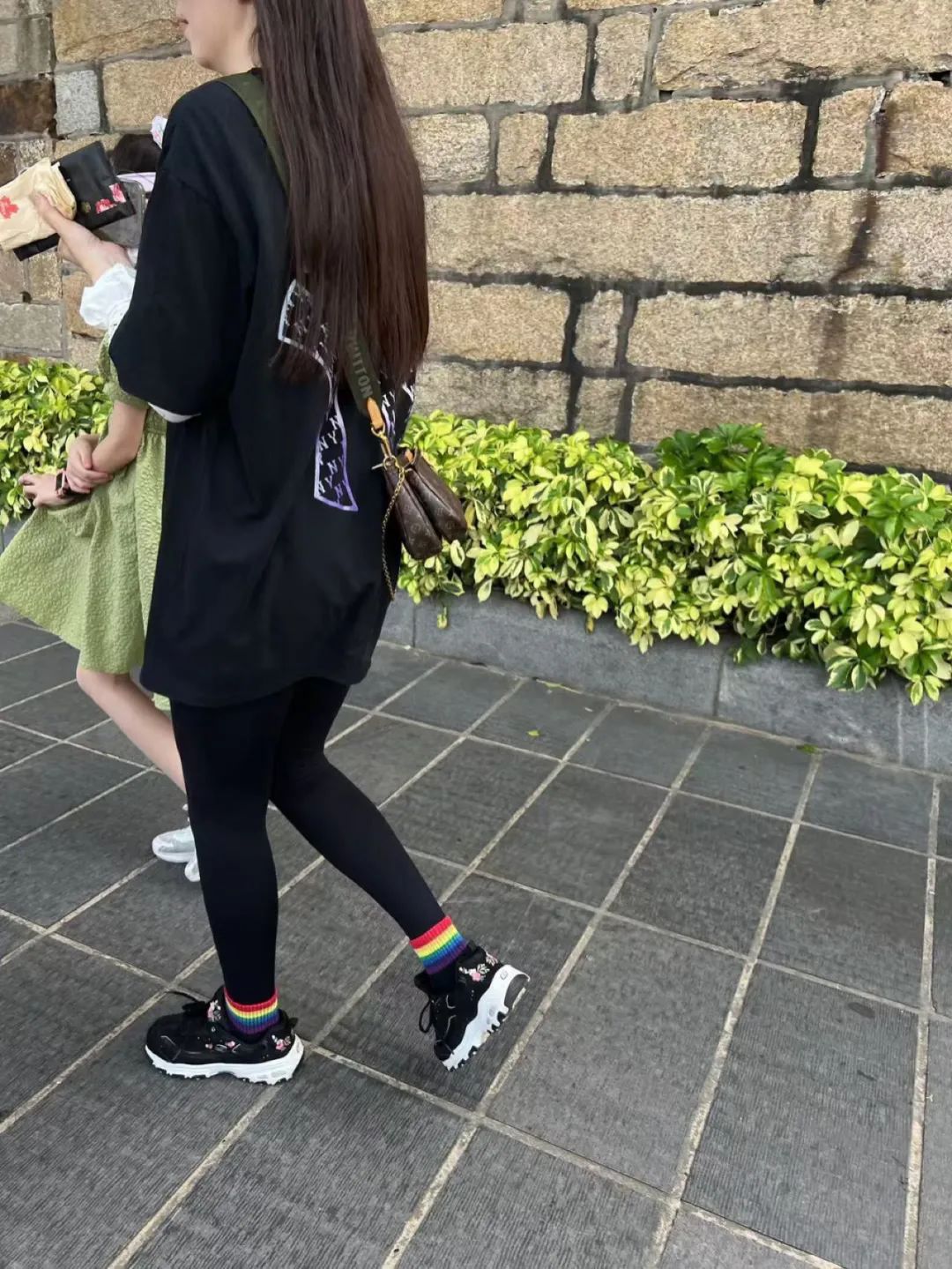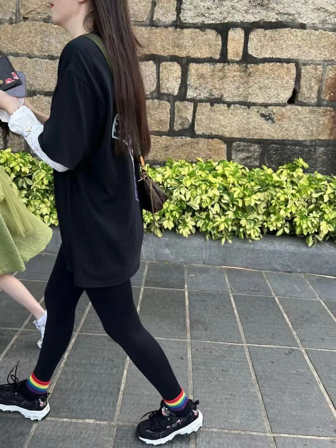 “黑色T恤搭配紧身裤的潮流密码”