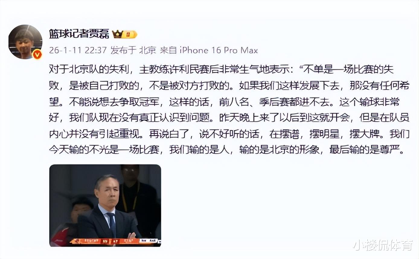 所以,这一场输球后,许利民终于忍不住了,公开批评球员。