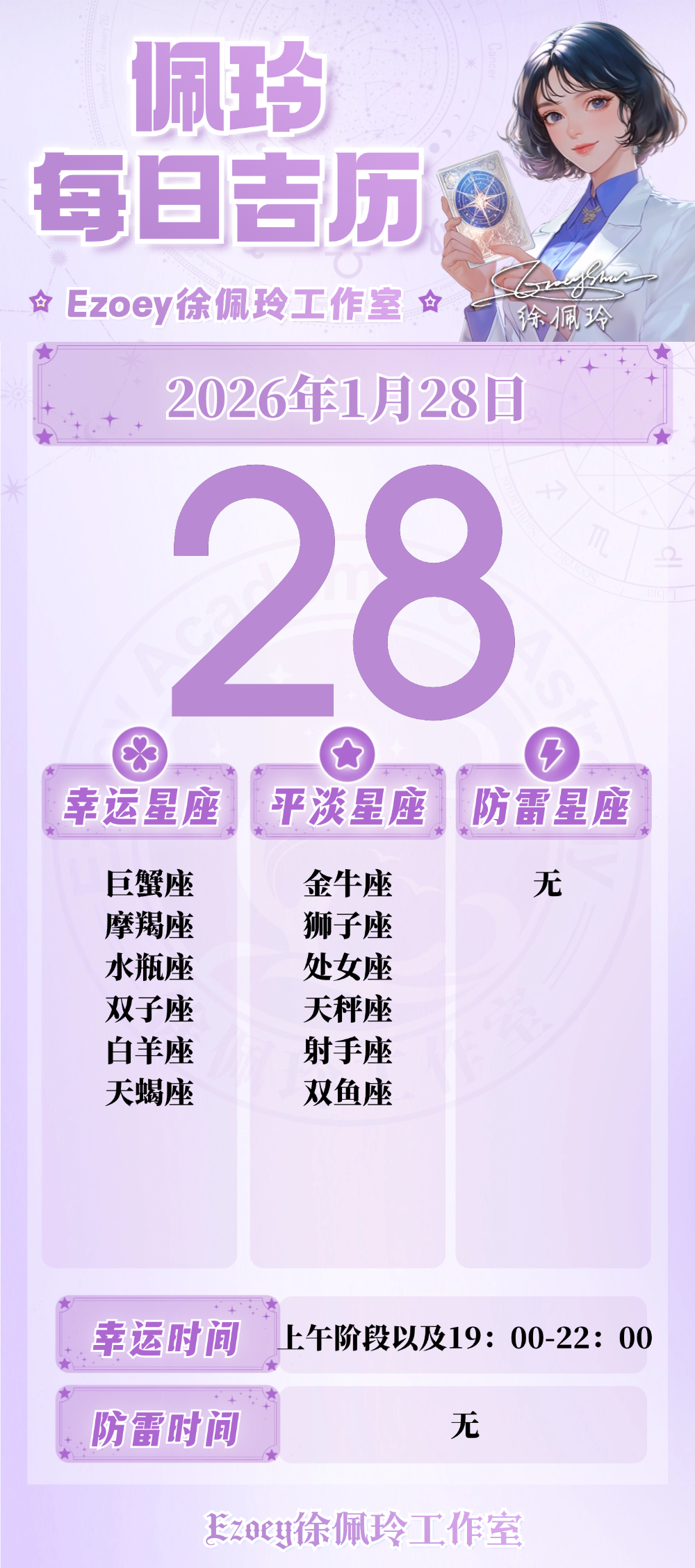 【1.28日播报】直觉洞察日 幸运星座:巨蟹座、摩羯座、水瓶座、双子座、白羊座、天蝎座——Ezoey徐佩玲26年星座播报