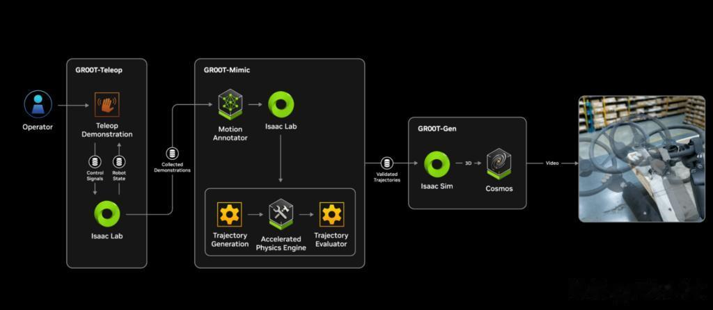 Physical AI是赋予仿真环境“智能大脑”的关键技术。传统仿真更多是对物理规则的静态复现,而Physical AI则能让虚拟环境具备动态学习与自适应能力——它通过整合物理引擎与AI算法,使虚拟物体能根据环境变化做出智能反应。英伟达的GR00T项目及其GR00T-Dreams数据引擎是这一理念的集中体现。