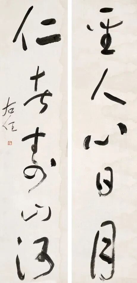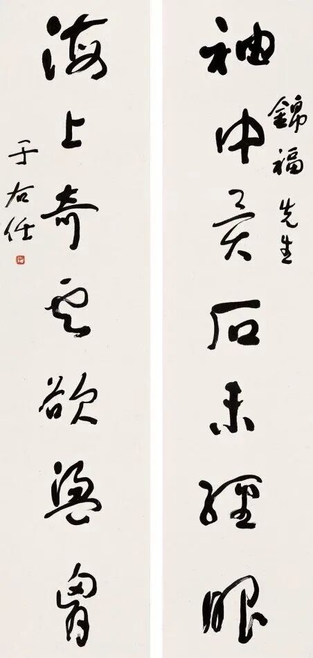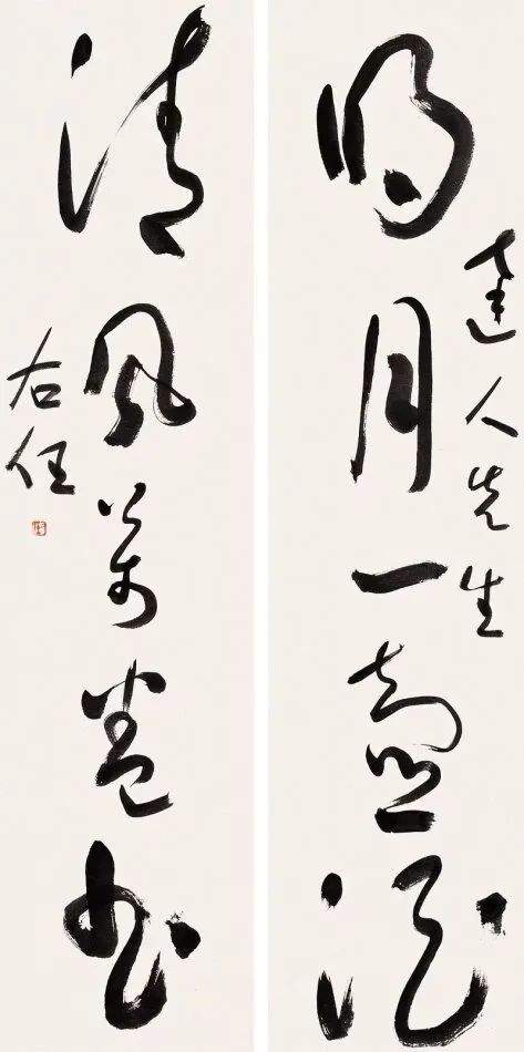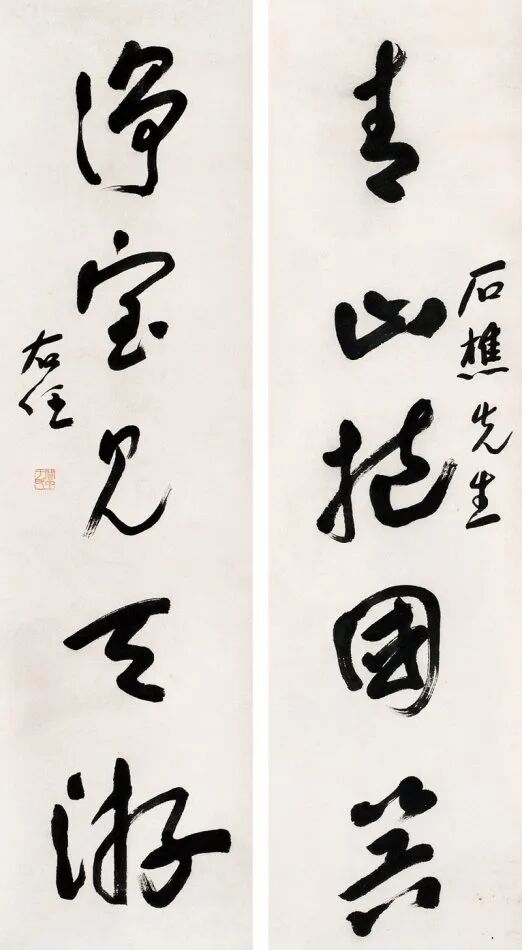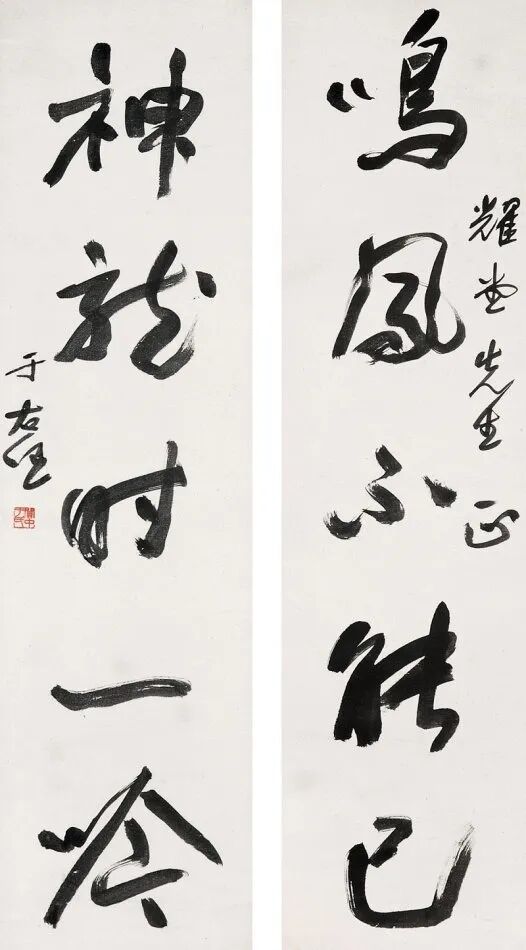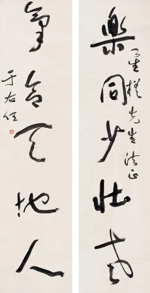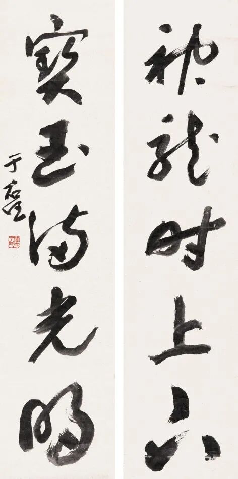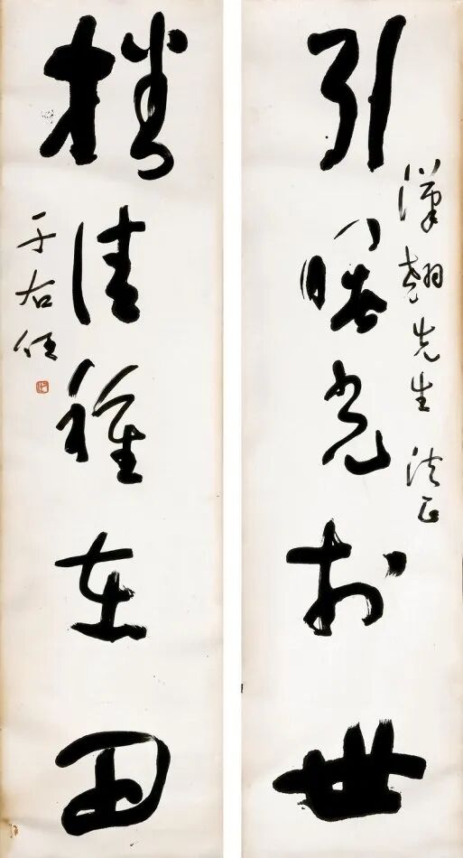其书法融汇碑帖,草书独步天下,风格雄浑洒脱,极具个性与力量感。此次曝光的巅峰对联真迹,笔墨酣畅,气韵生动,堪称其书法艺术巅峰之作,极为罕见,极具收藏与研究价值!