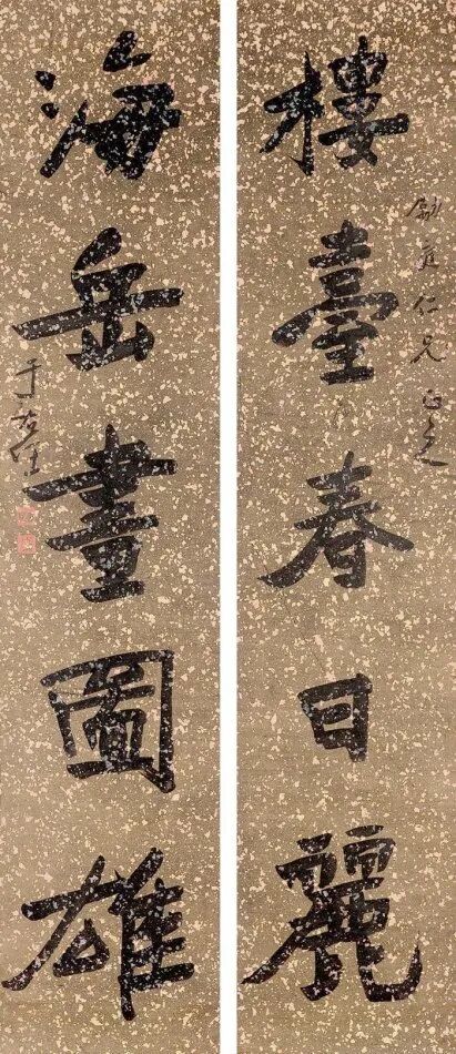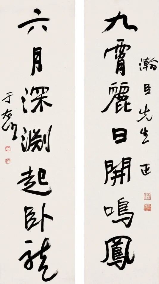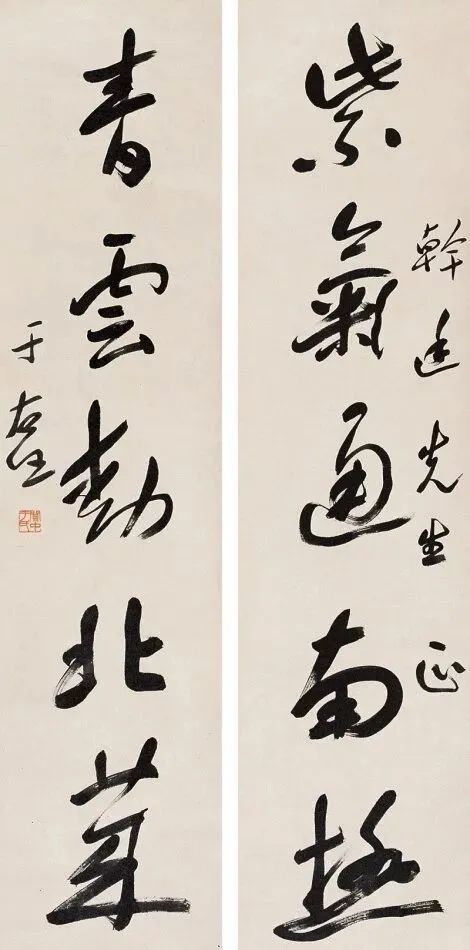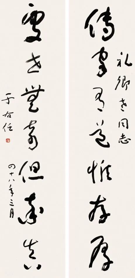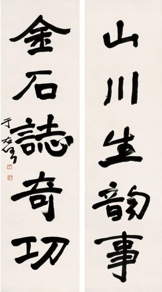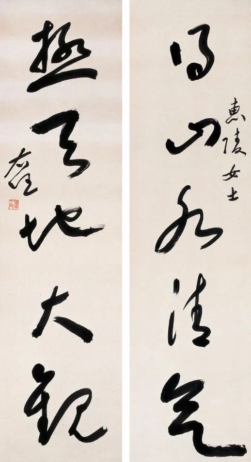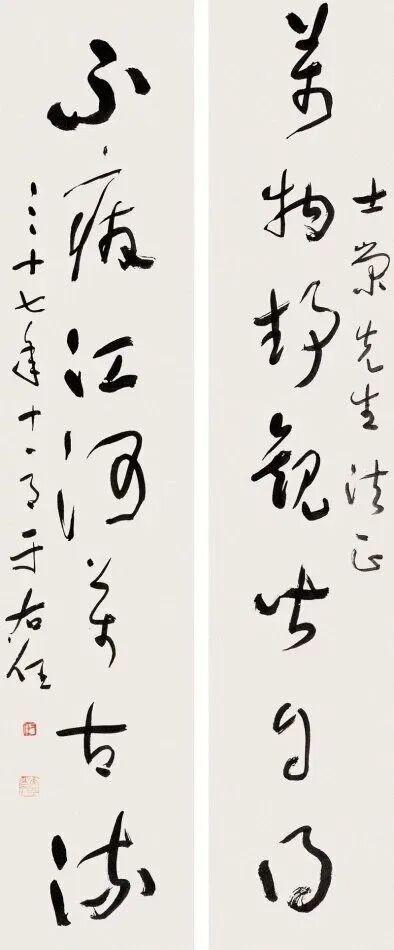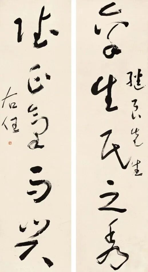 其书法融汇碑帖,草书独步天下,风格雄浑洒脱,极具个性与力量感。此次曝光的巅峰对联真迹,笔墨酣畅,气韵生动,堪称其书法艺术巅峰之作,极为罕见,极具收藏与研究价值!