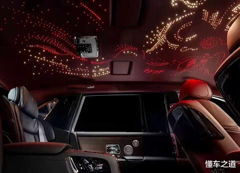 劳斯莱斯最有名气的当然是星空顶,目前国内车纷纷借鉴,此次的星空顶,也是融入了中国元素,用1200多盏光纤灯组成,排列出红白两条龙的图案。