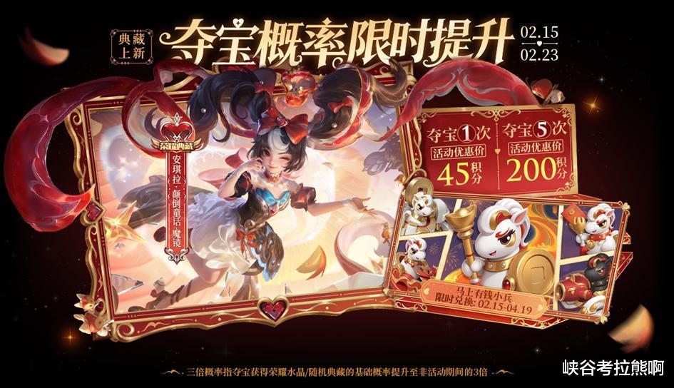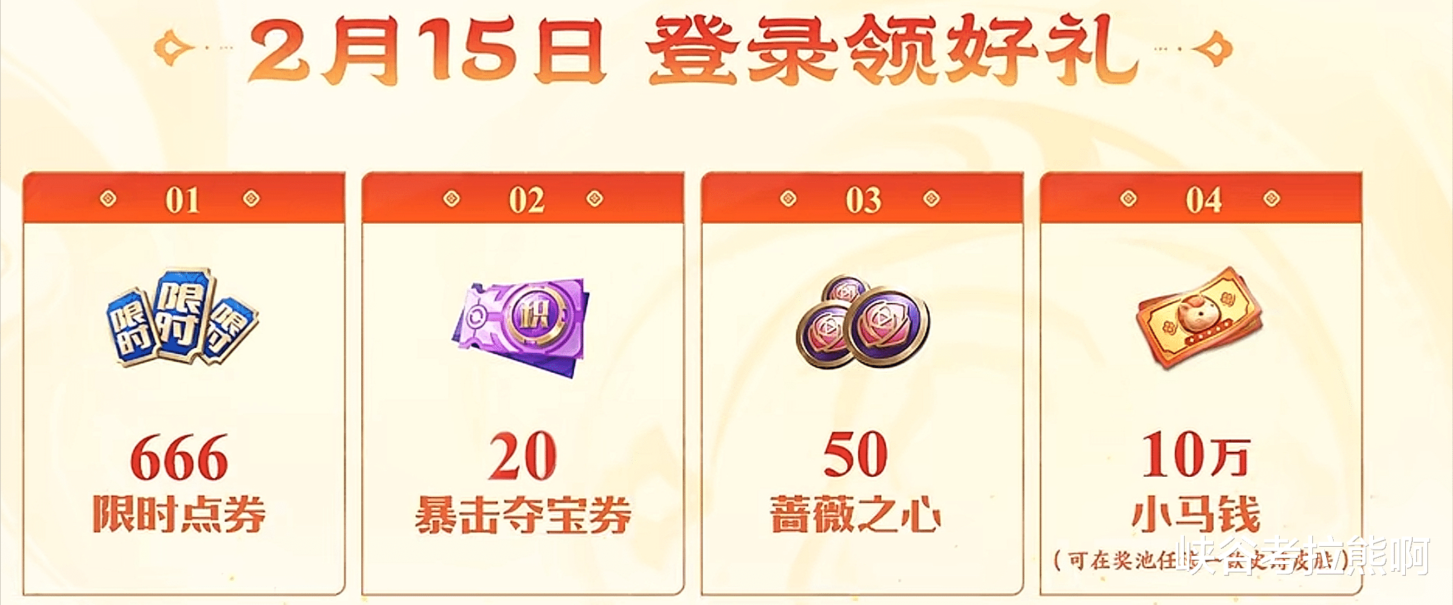 暴击夺宝也将于2月15日到23日开启,积分夺宝的三倍爆率终于来了,攒了一年的积分终于派上用场了。