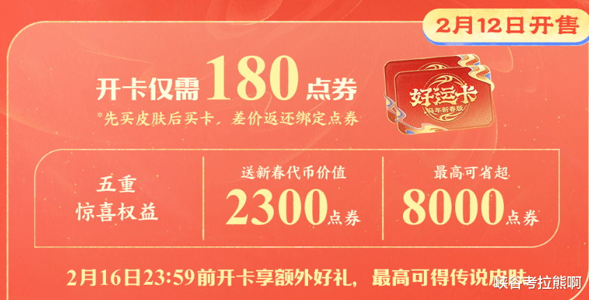 以上就是春节期间的主要活动内容,另外根据好运卡的福利提升,目前还有几款皮肤没有爆料,但拥有好运卡同样可以优惠入手,所以15号开卡真的是最优解!