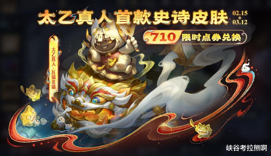 2月12日到3月12日,限时点券商城开启。本次回有太乙真人新皮肤瓦猫非猫上线,价格为710限时点券,并附赠个性按键。如果大家对太乙真人不感兴趣,还可以考虑东皇太一的灼幽烈阳,百里守约和镜的真我赫兹,刘禅电玩·爆裂旋风,张良千筹问战,大乔白蛇几款皮肤,品质都不错。