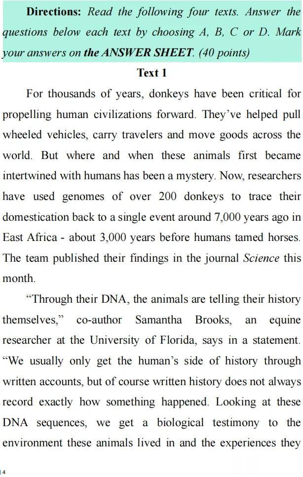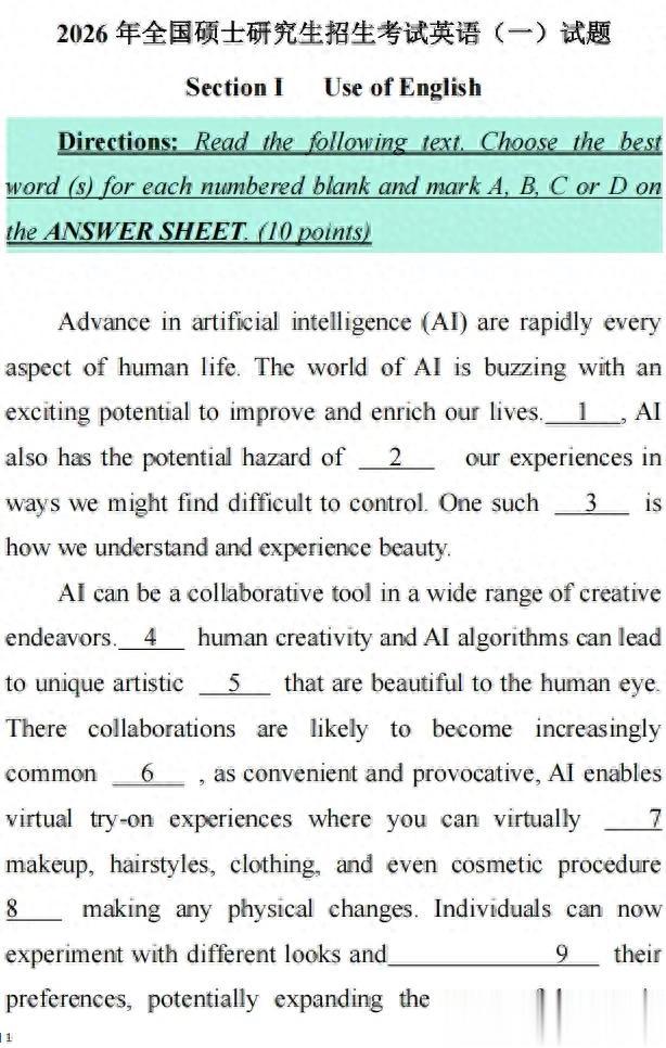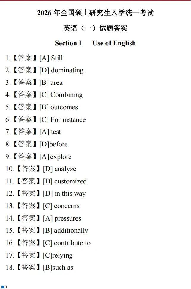 2026全国硕士研究生考试考研英语一试题答案