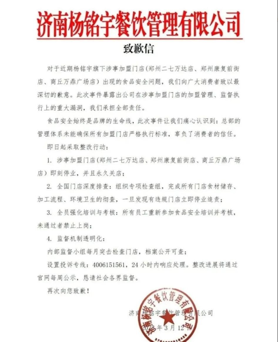 视频一经曝光,便在网络上引发轩然大波。网友们纷纷谴责,分享自己的不良体验,甚至有人因为吃了黄焖鸡而出现腹泻等症状。杨铭宇黄焖鸡总部在凌晨两点发布声明,称永久关闭三家门店。 可这远远不够! 网友们翻出了该品牌去年的“旧账”——消费者因食用其产品而住院! 加盟商的爆料更是令人震惊:总部培训只注重料理包的使用,对卫生检查几乎没有提及。 即使总部承诺“全国彻查”,仍有加盟店继续使用未检疫的鸡肉。 这“全国彻查”的承诺,究竟能走多远?