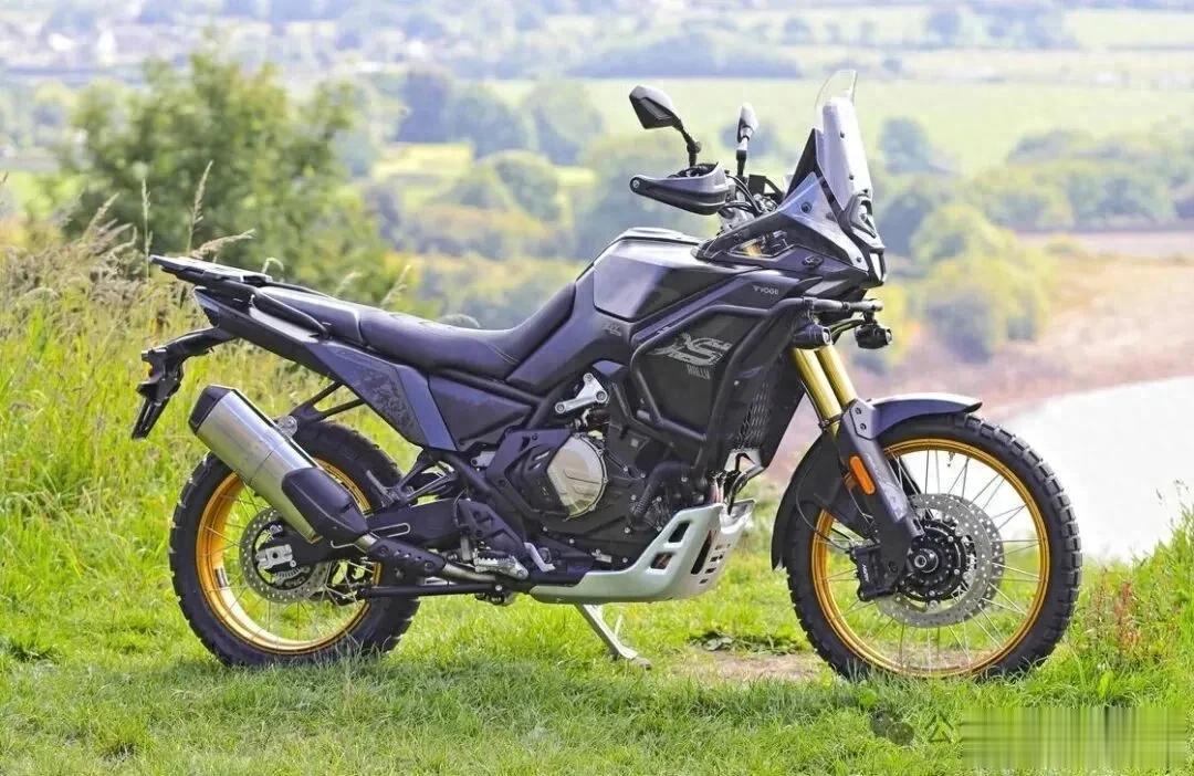 前全可调43mm KYB倒置前叉,行程200mm,KYB后减震,行程190mm。前轮21寸,后轮18寸,原厂倍耐力STR蝎子胎,离地间隙220mm。