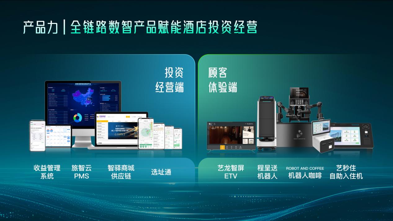 该“数智百宝箱”由 1个数据中心、2个赋能工具、3个支持平台、4个核心抓手而构成:通过自研“龙珠数据中心“实现大数据采集及分析; 自主研发“艺秒住”自助入住机、“艺龙智屏”酒店电视系统、“程呈送”送物机器人、“ROBOT AND COFFEE”无人化咖啡等一系列智能设备提升顾客端消费体验;分别针对BCE端,开发了E店通、E加盟、艺龙云平台三大支持平台,提升酒店数字化经营管理;并通过四个核心抓手覆盖投前选址决策、投中拓建管理、投后收益及品质管理。通过“数智百宝箱”实现全链路赋能酒店投资经营。