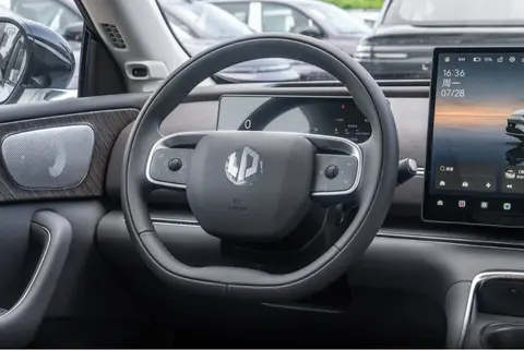 内饰设计延续极简而质感十足的风格。中控台采用环抱式座舱设计,空气出风口为隐藏式贯穿布局,搭配双色方向盘、木纹饰板以及金属饰条,整体提升车内豪华感和层次。车机屏幕尺寸大幅升级到17.3英寸,配合10.25英寸全液晶仪表盘和60英寸AR-HUD抬头显示,驾驶信息一览无遗,科技感爆棚。内饰置物表面采用66层镭雕工艺,纹理深达100微米,细节处提升触感和美观度。车内香氛系统的引入增强了驾乘环境的舒适度。50瓦带风冷的无线充电板实现了充电效率的提升,并有效避免手机过热问题,更体现了实用考量。