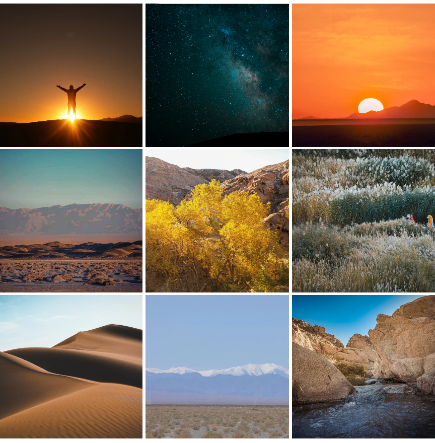 浩瀚的戈壁沙漠延伸至天际线,夜晚的璀璨星河似触手可及,黎明有染红地平线的壮丽日出,风吹过芦苇荡起伏如浪......每一步皆是风景,每一眼皆受震撼。