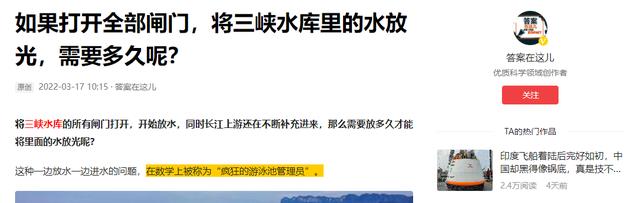 打开三峡大坝全部闸门,放光水库里的水需要多长时间?长见识了