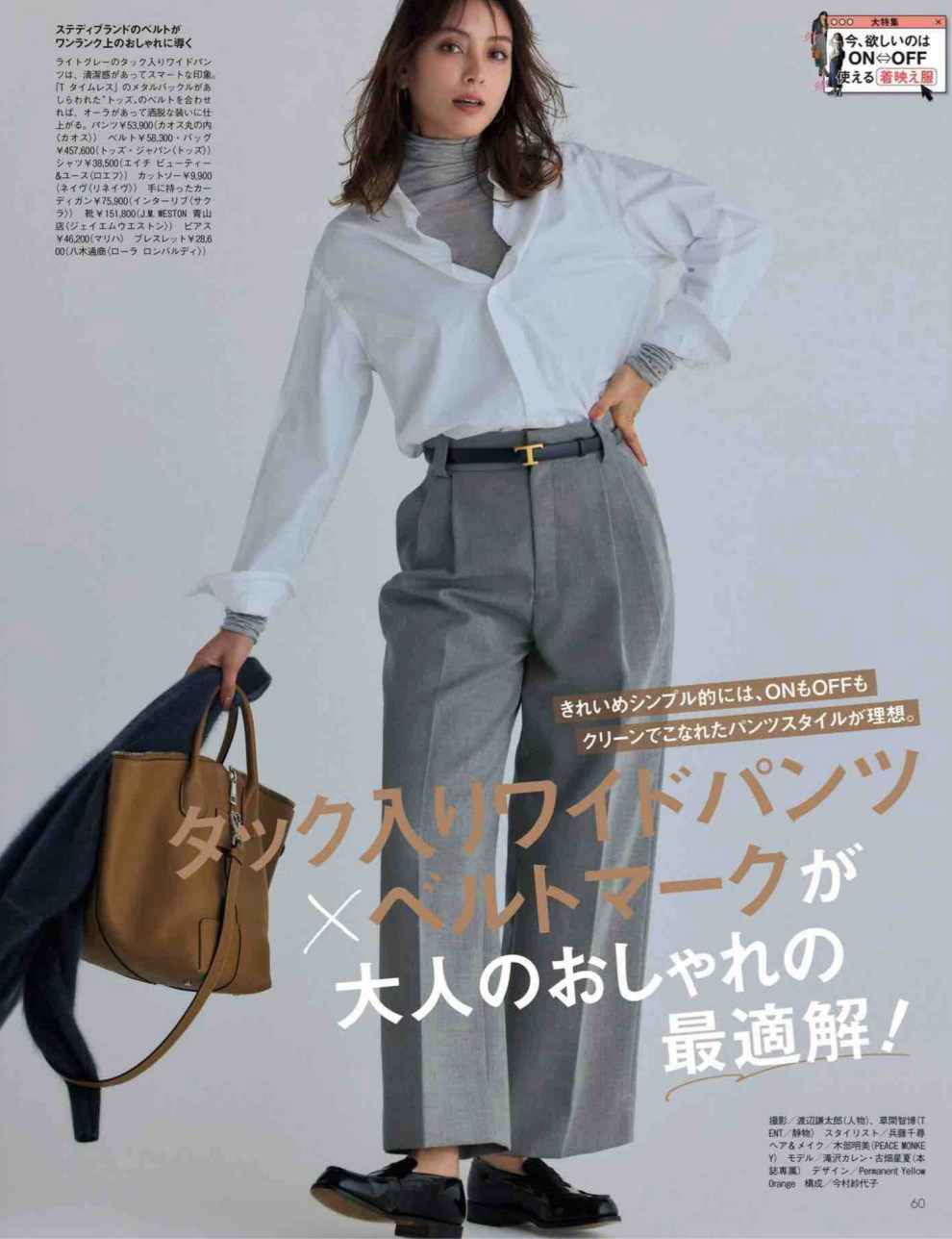 推荐高领衫和阔腿裤同色系,上下呼应起来。比如灰色高领衫配灰色阔腿裤,再搭一条黑色腰带点缀。