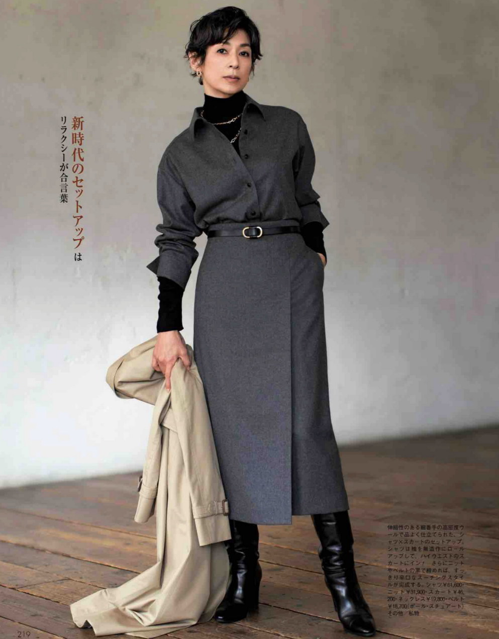 衬衫+高领衫的组合,可以直接外搭一件廓形外套,在冬季非常实穿。
