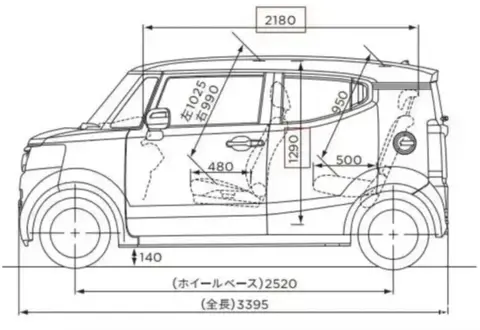 外观设计方面,新车整体以方正为主,前脸采用封闭式格栅,双层日行灯集成转向灯功能,点亮后形成独特光影标识,既符合纯电身份又兼顾实用性。其更是严格遵循日本K-Car法规,车身长度控制在3400mm以内,宽度不足1480mm,配合4.2米极小转弯半径,在东京、大阪的狭窄巷道中掉头泊车游刃有余。方正轮廓搭配 “四轮四角” 设计,最大化利用车身尺寸,短前后悬布局让轴距占比远超同级。