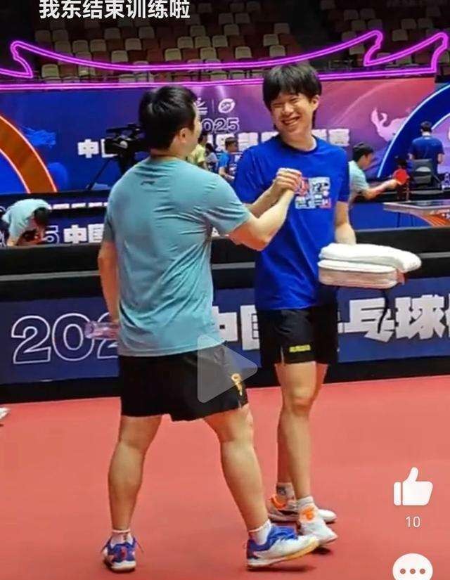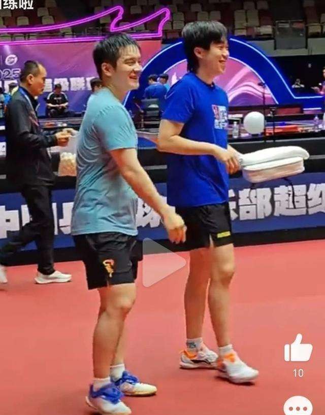 当王楚钦走近时,樊振东立刻注意到了他的出现,热情地迎接他。两位年轻的乒乓球明星在场上相互击掌,彼此的脸上都洋溢着开心的笑容,那一刻,似乎没有比赛的压力,只有多年来并肩作战所培养出的深厚友情。尽管球迷们曾在樊振东宣布退出世界排名后,猜测两人可能会因此疏远,甚至编造出一些不实的故事来,但这一切都不能动摇他们之间的友谊。