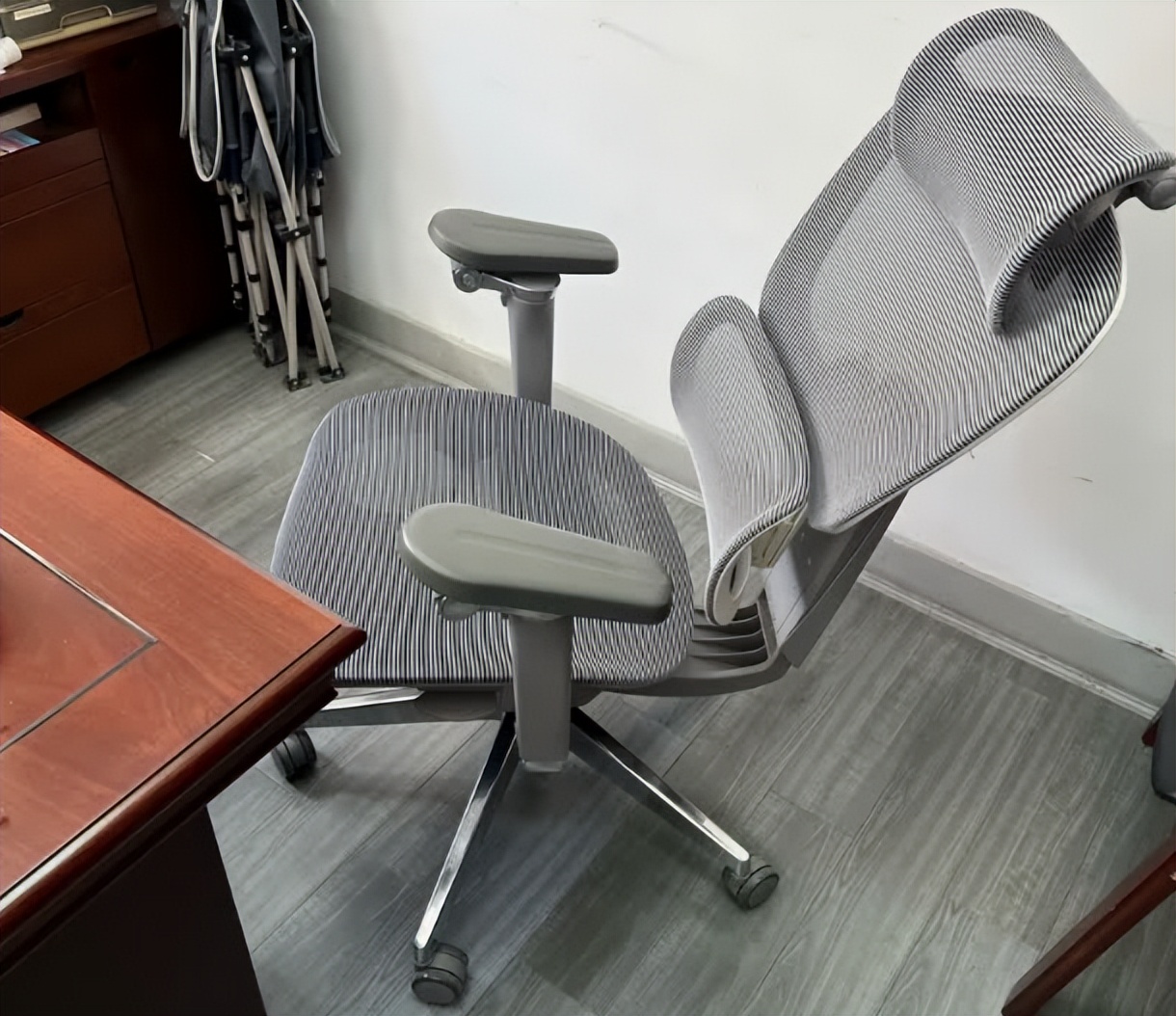 耐用度看椅脚、轮子和网布,铝合金椅脚结实承重好,PU轮子静音又保护地板,耐磨网布用几年也不松垮。