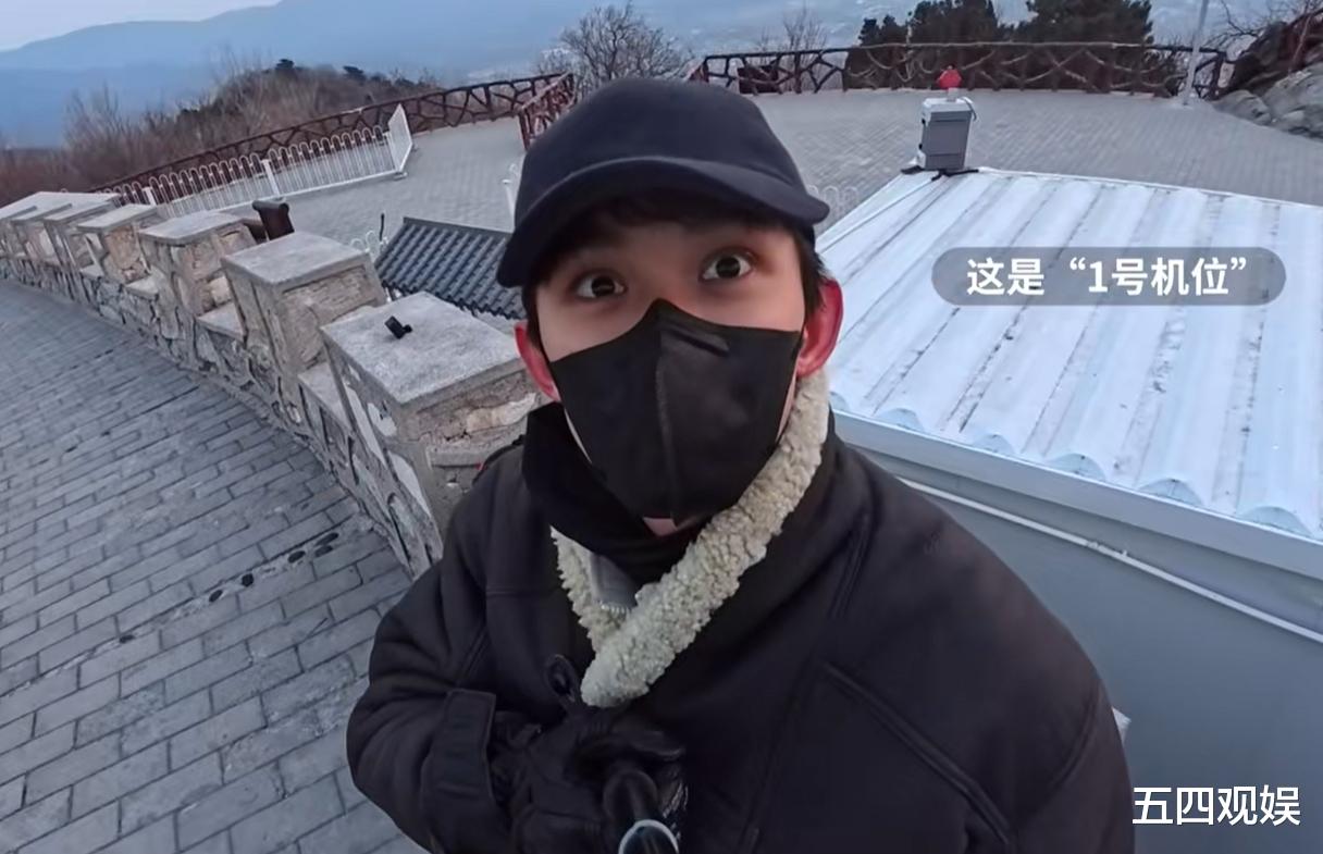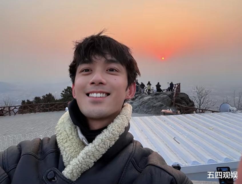 当天空微微泛粉,吴磊终于登上了山顶,可惜薄雾弥漫,似乎这是一场他对日出的“单向奔赴”。