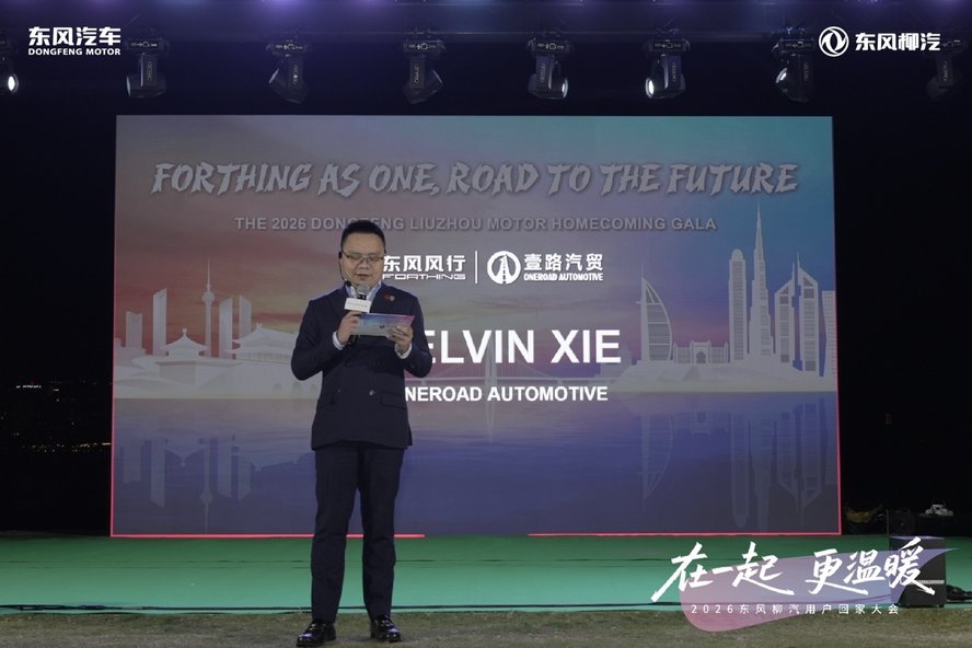伴随着悠扬的旋律,东风柳汽进出口公司副总经理温华登台致辞:东风柳汽海外深耕35载,我们始终感恩每一位用户的信任与选择。正因为有大家的信赖,东风柳汽的产品才得以陪伴更多家庭的生活与旅途、见证更多企业的发展与壮大。同时,由衷感谢阿联酋经销商的大力支持和全情投入,让这一场跨越5000公里的“团聚”得以实现。未来,东风柳汽会继续保持务实奋斗的精神,用坚实可靠的品质与智能舒适的产品回馈用户。无论是创富助力还是温情守护,东风柳汽都将与全球用户并肩前行。