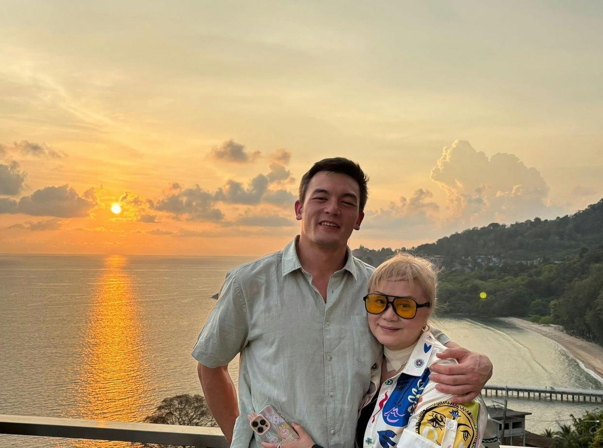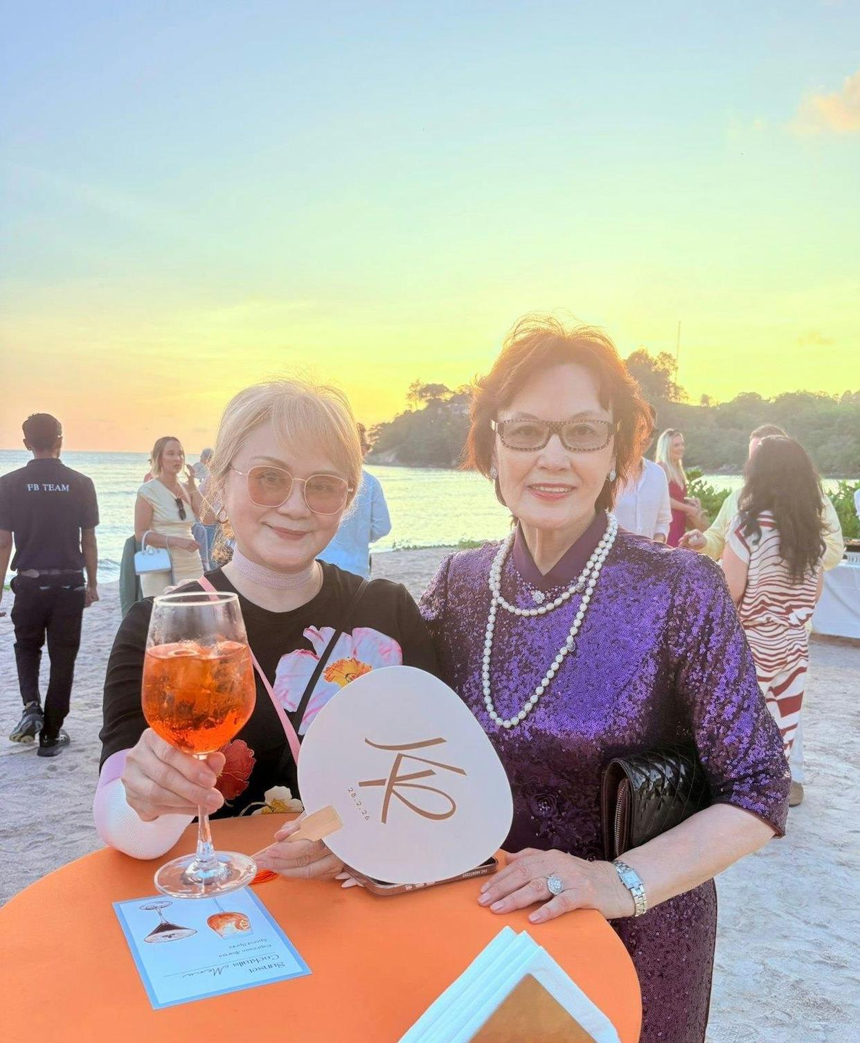 杨恭如妈妈刘宜珍。 这位老太太可不简单,当天那身行头,紫色旗袍闪闪发亮,珍珠项链又大又圆,手上的钻戒和镯子一看就价值不菲。 整个人雍容华贵,气质特别好,根本不像有个52岁女儿的人。 她跟林建明是多年好友,这次就是她亲自邀请林建明去泰国的。 刘宜珍自己也是演员,中美混血,当年演过电影《上海1976》。 杨恭如出道以后,她就当起了女儿的经纪人,在香港娱乐圈人脉很广。 她这辈子结过两次婚,都离了,一个人把杨恭如和弟弟拉扯大,在家里说一不二,是个狠角色。 杨恭如当年参加亚姐选美,就是她妈给报的名。