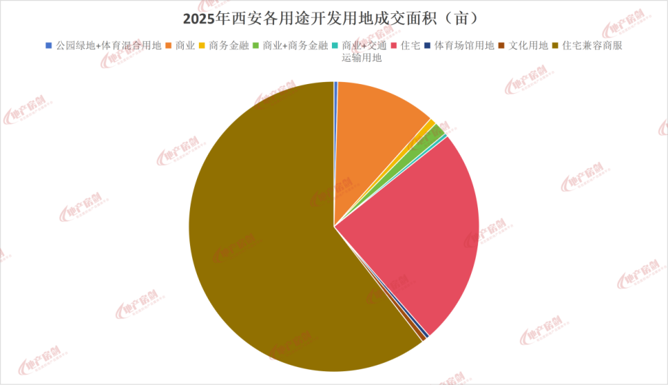 地产房剑统计显示,2025年西安全市(含西咸新区)共计成交123宗,成交面积5701.85亩,土地出让金收入合计557.8亿元。