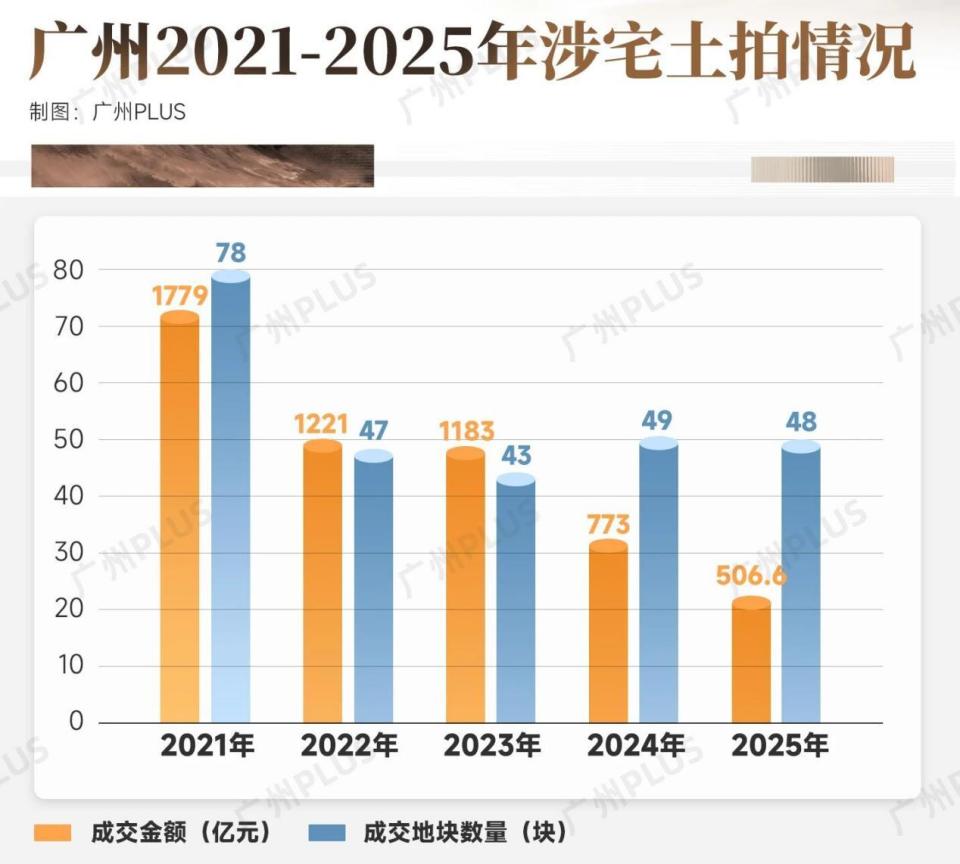广州全年总共挂牌57宗涉宅地,最终成交48宗,成交金额506.6亿元;相比24年49宗、772.7亿元的成绩,金额明显瘦身。