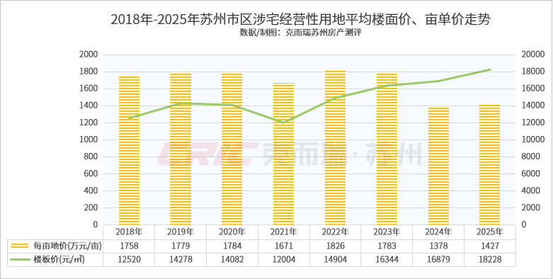 克而瑞数据显示,2025年苏州共有41宗涉宅经营性地块成交,平均楼面价18228元/㎡,成交总金额339.63亿元。